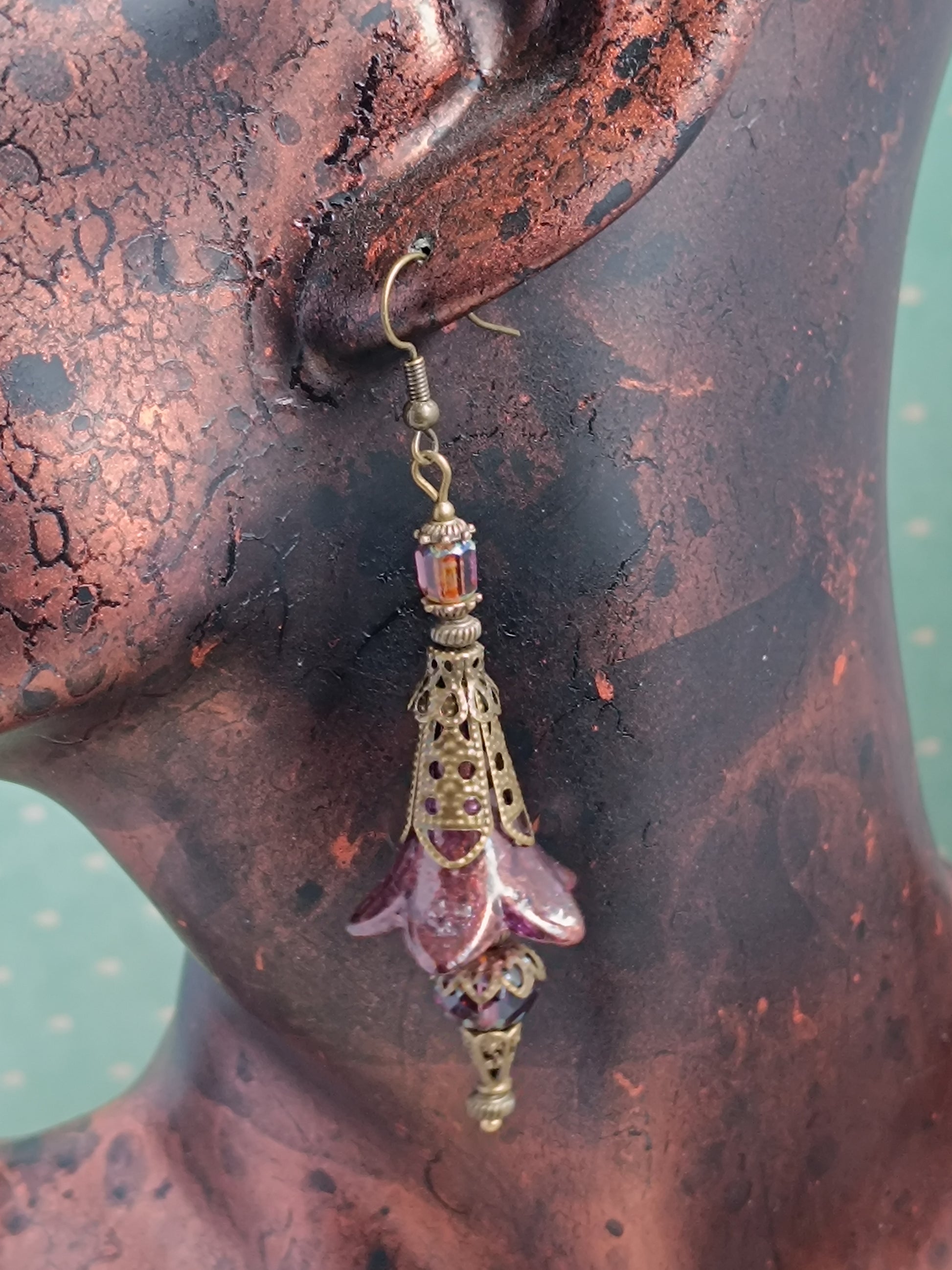 Boucles d’oreilles pendantes artisanales – Collection “Fleurs Féeriques d’Automne”