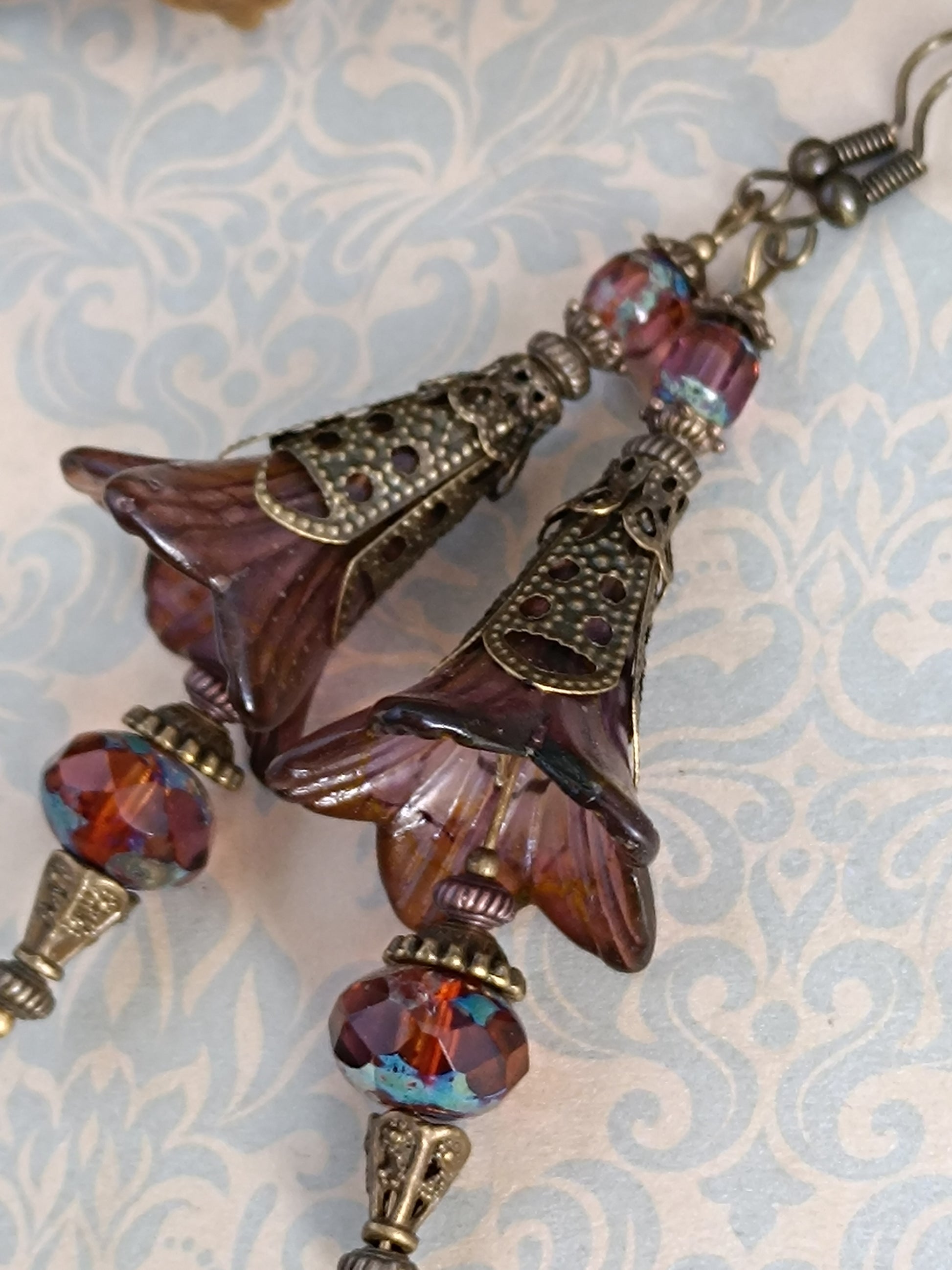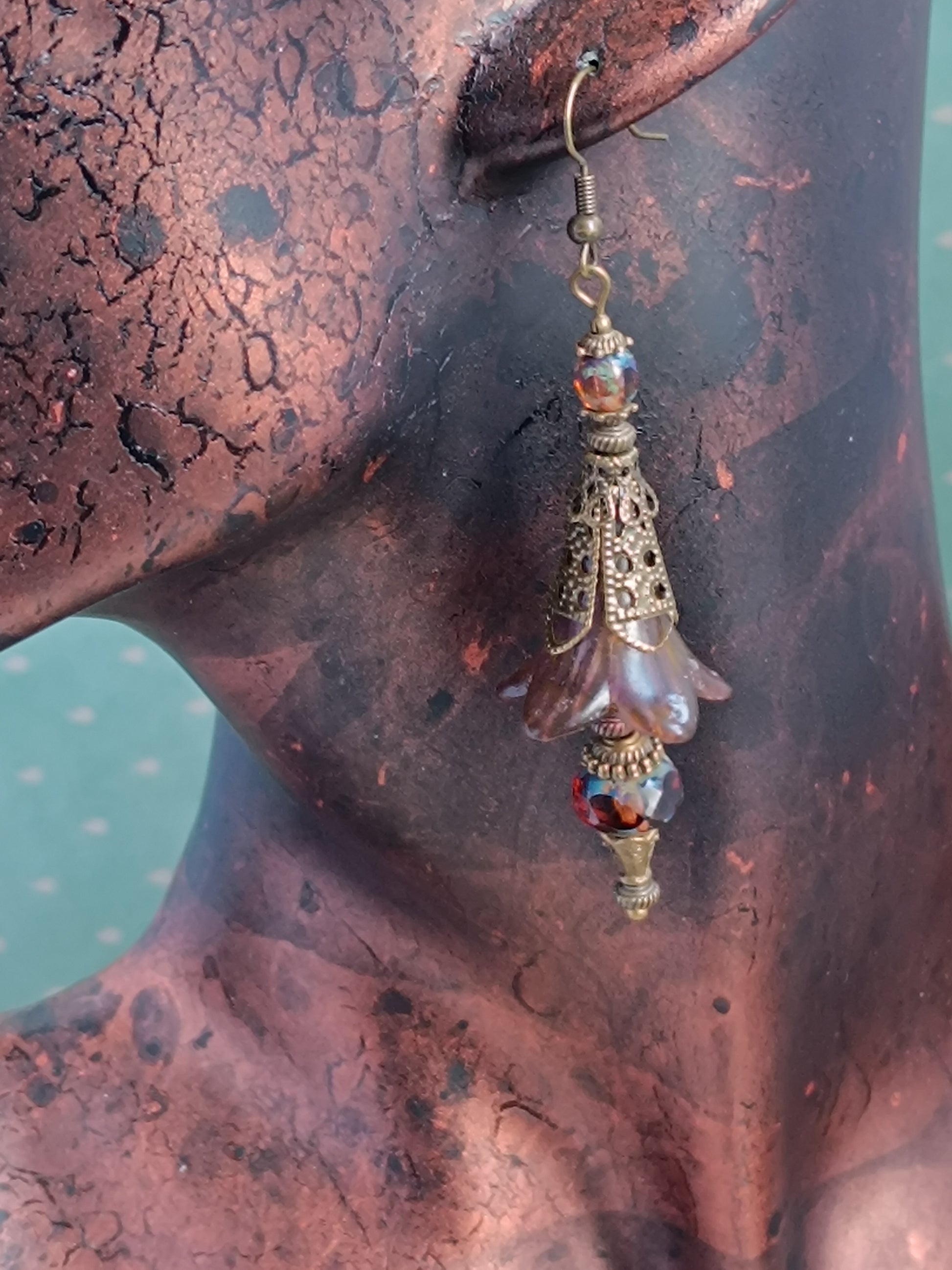 Boucles d'oreilles pendantes artisanales – Collection "Fleurs Féeriques d'Automne"