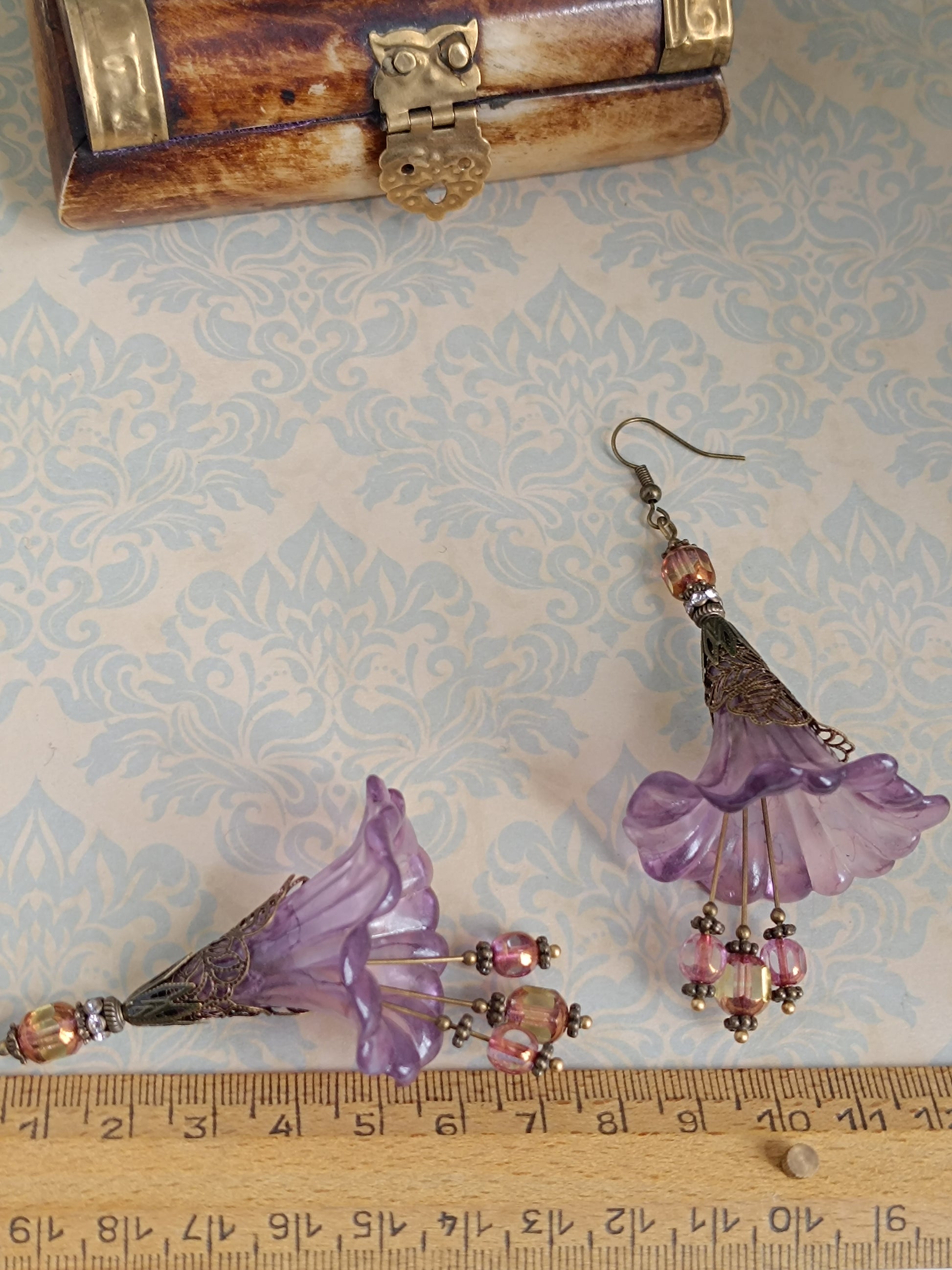 Ces boucles d'oreilles me rendent nostalgique du printemps ! Je peins chaque pétale à la main sur la lucite, comme si je cultivais des fleurs éternelles. Elles évoquent la beauté des fleurs de trompette en pleine floraison dans la brise, un mélange délicieux d'élégance conte de fées et de style bohème.