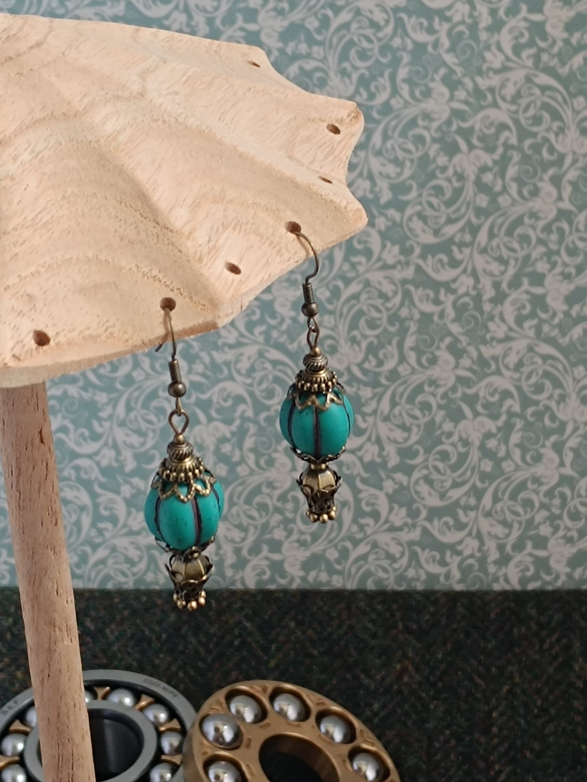 Ces magnifiques boucles d'oreilles montgolfière turquoise allient parfaitement l'esthétique steampunk et la délicatesse artisanale française. Chaque pièce est réalisée à la main, ce qui rend chaque bijou absolument unique.