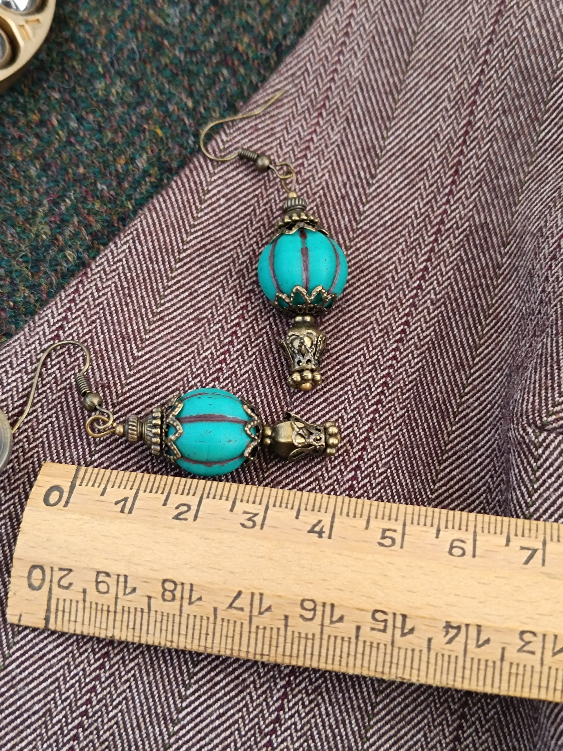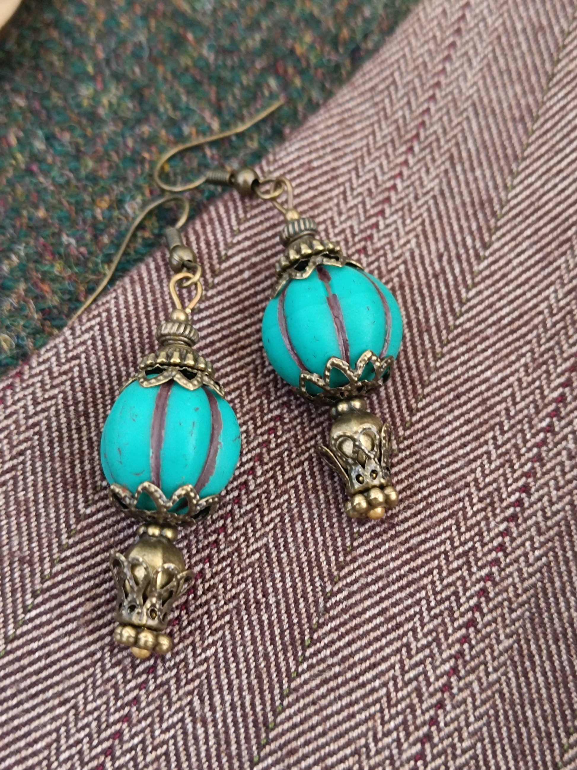 Boucles d'oreilles Steampunk montgolfière turquoise - Perles verre tchèque