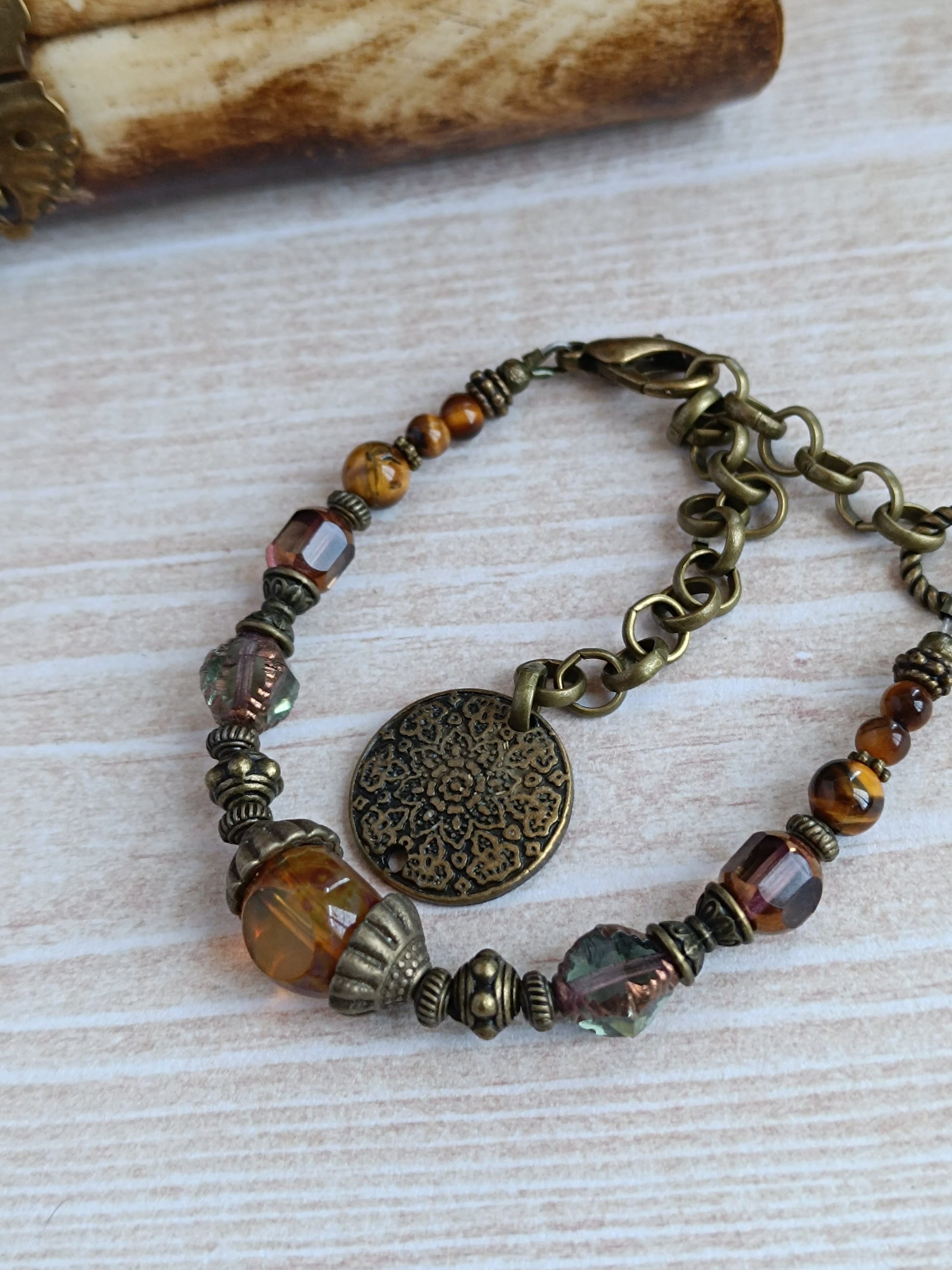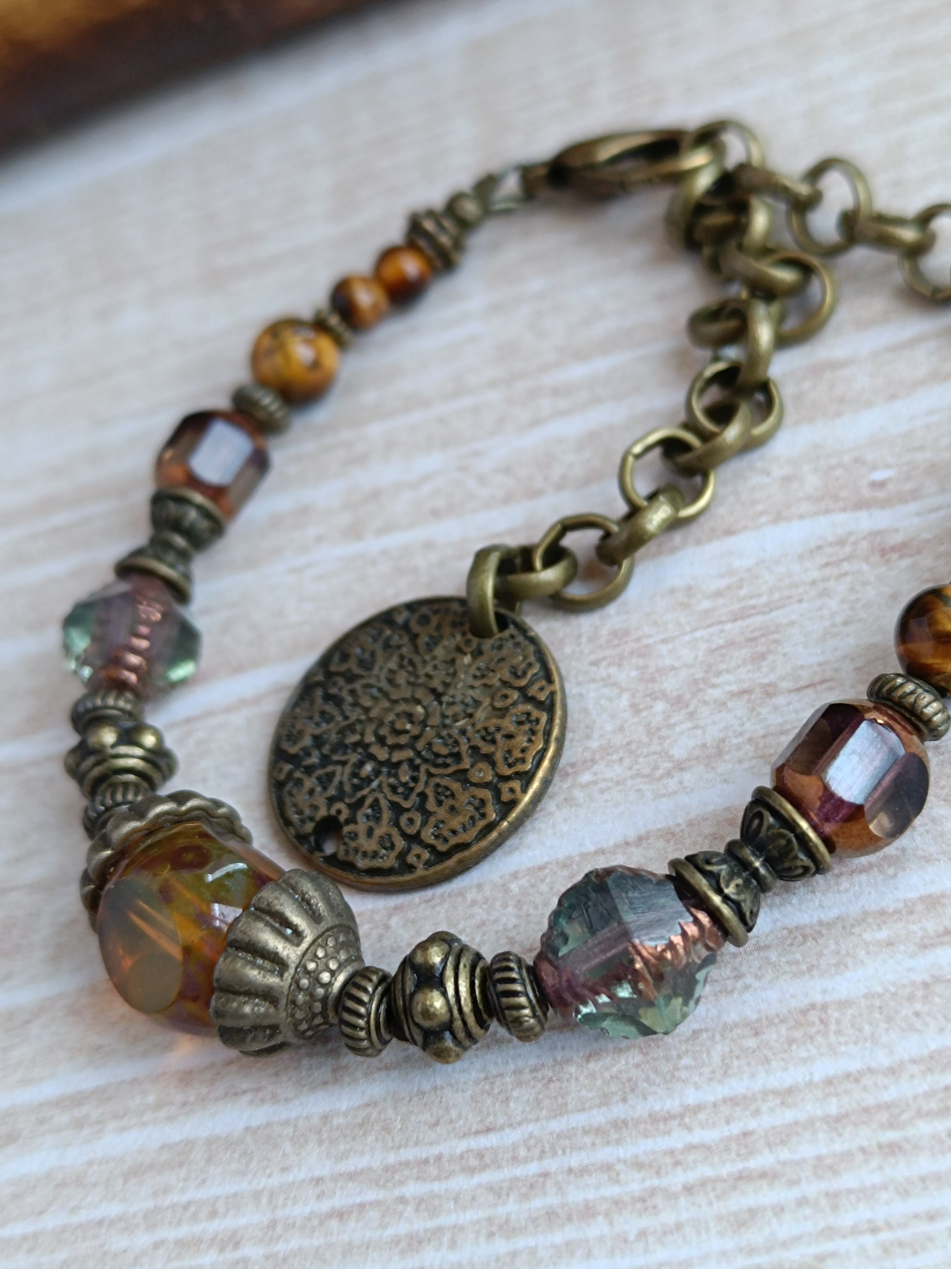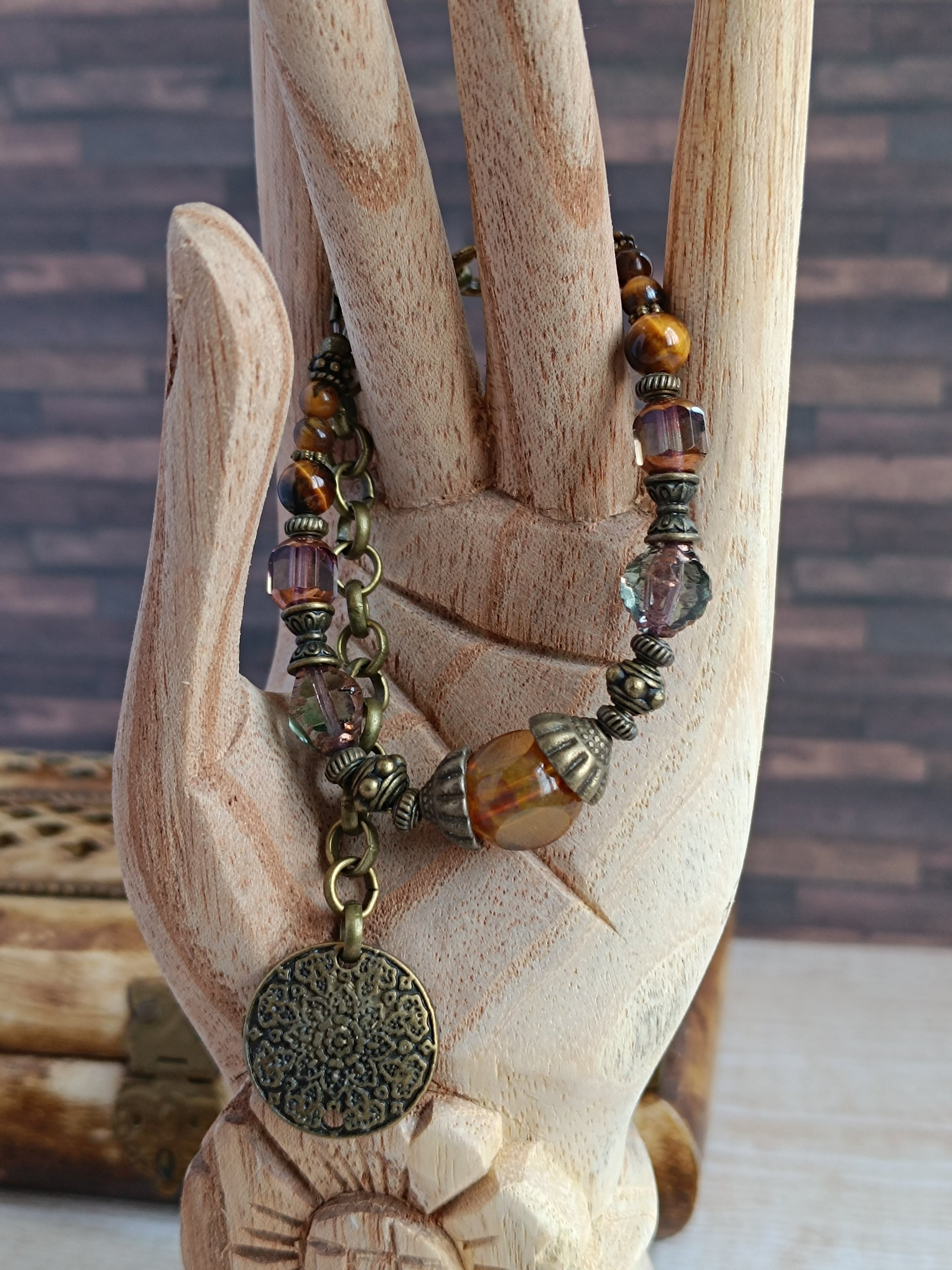 Bracelet Bohème – Œil de Tigre & Verre Tchèque