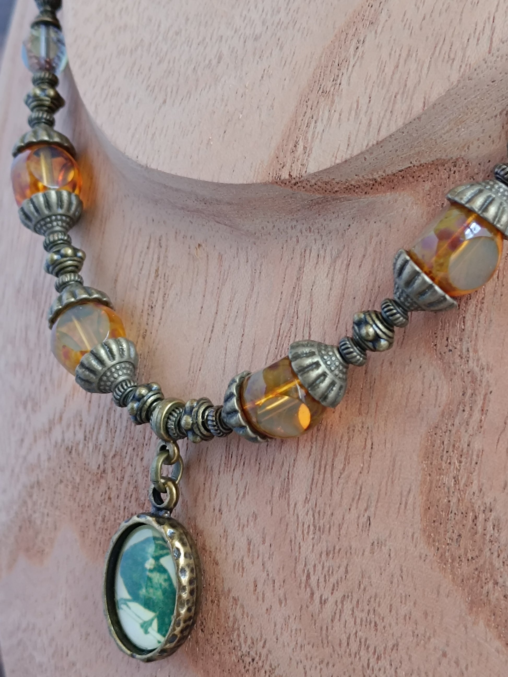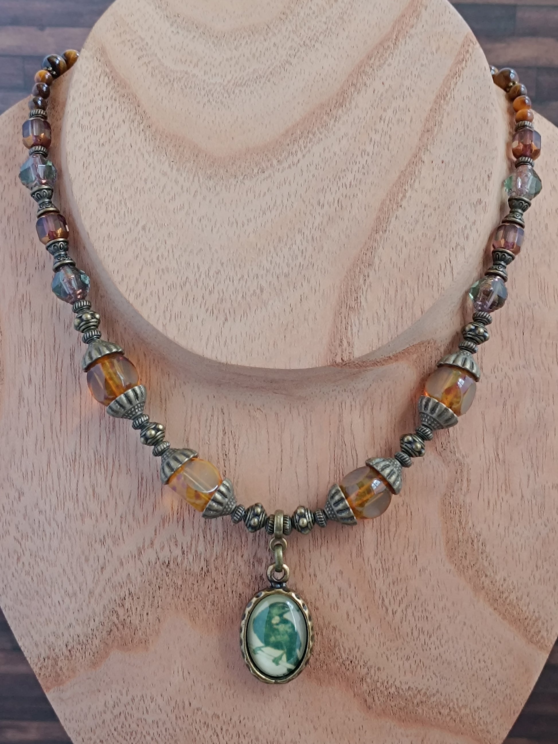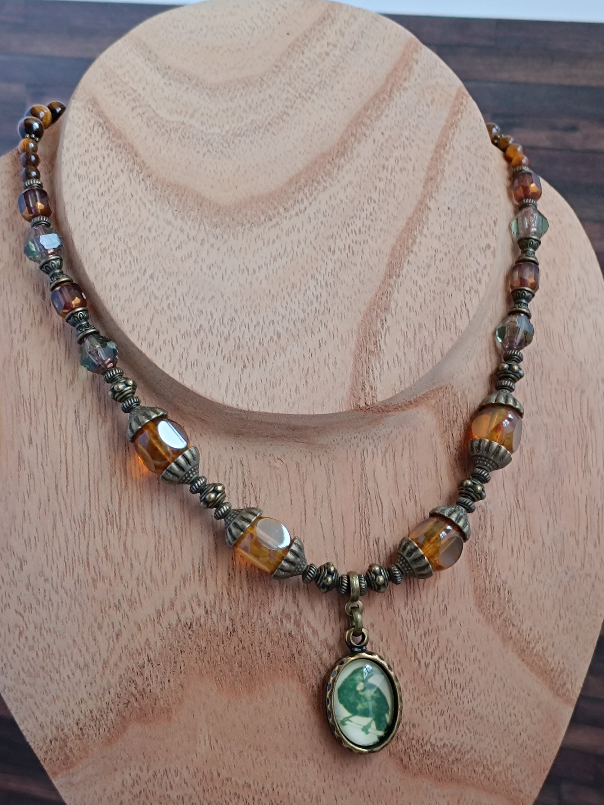 Ce collier évoque tout ce que j'aime dans les symboles puissants ! J'y ai marié des éclats minéraux et des textures chaleureuses pour créer une pièce protectrice et pleine de caractère. Un véritable talisman pour les esprits libres.