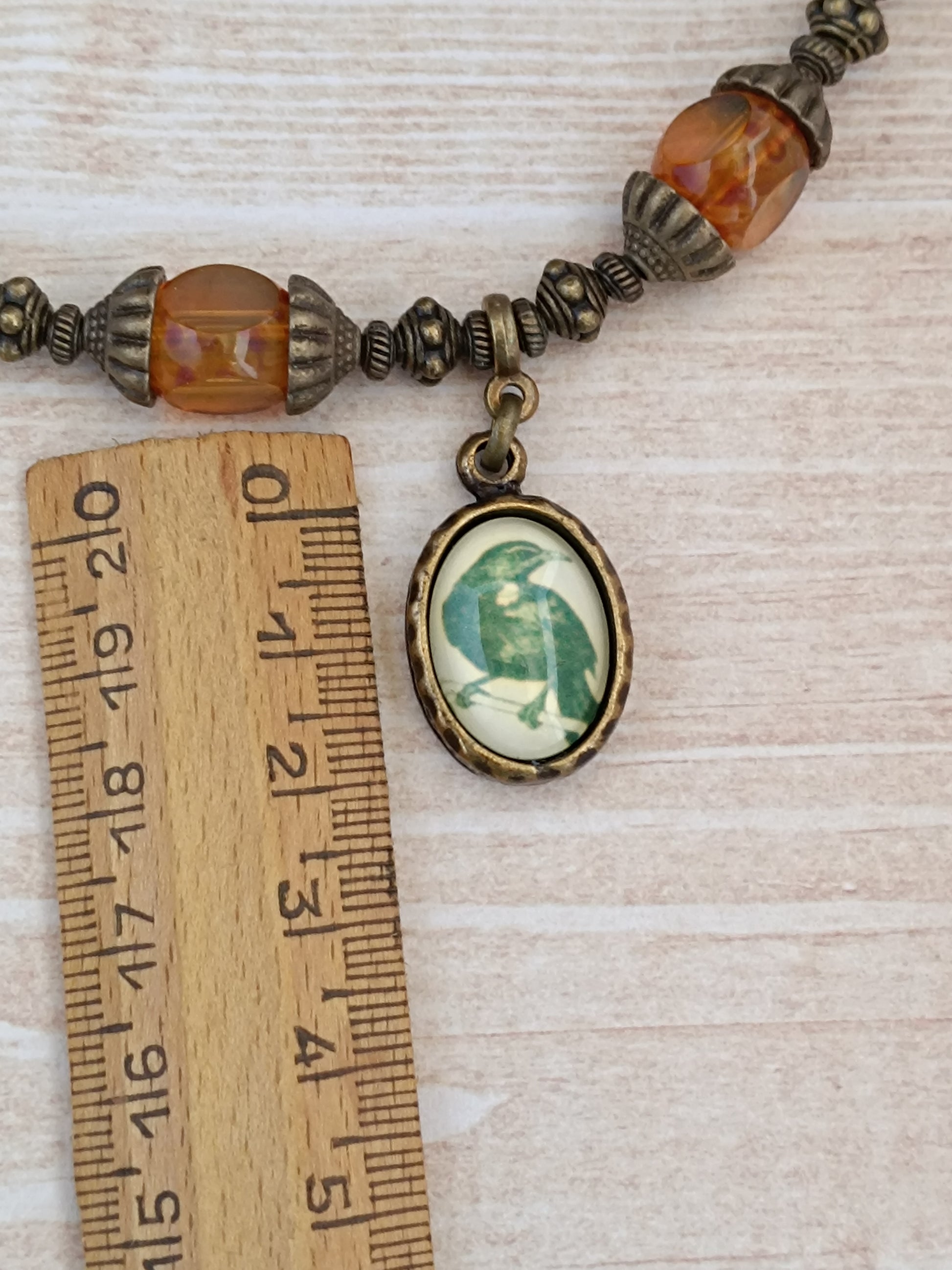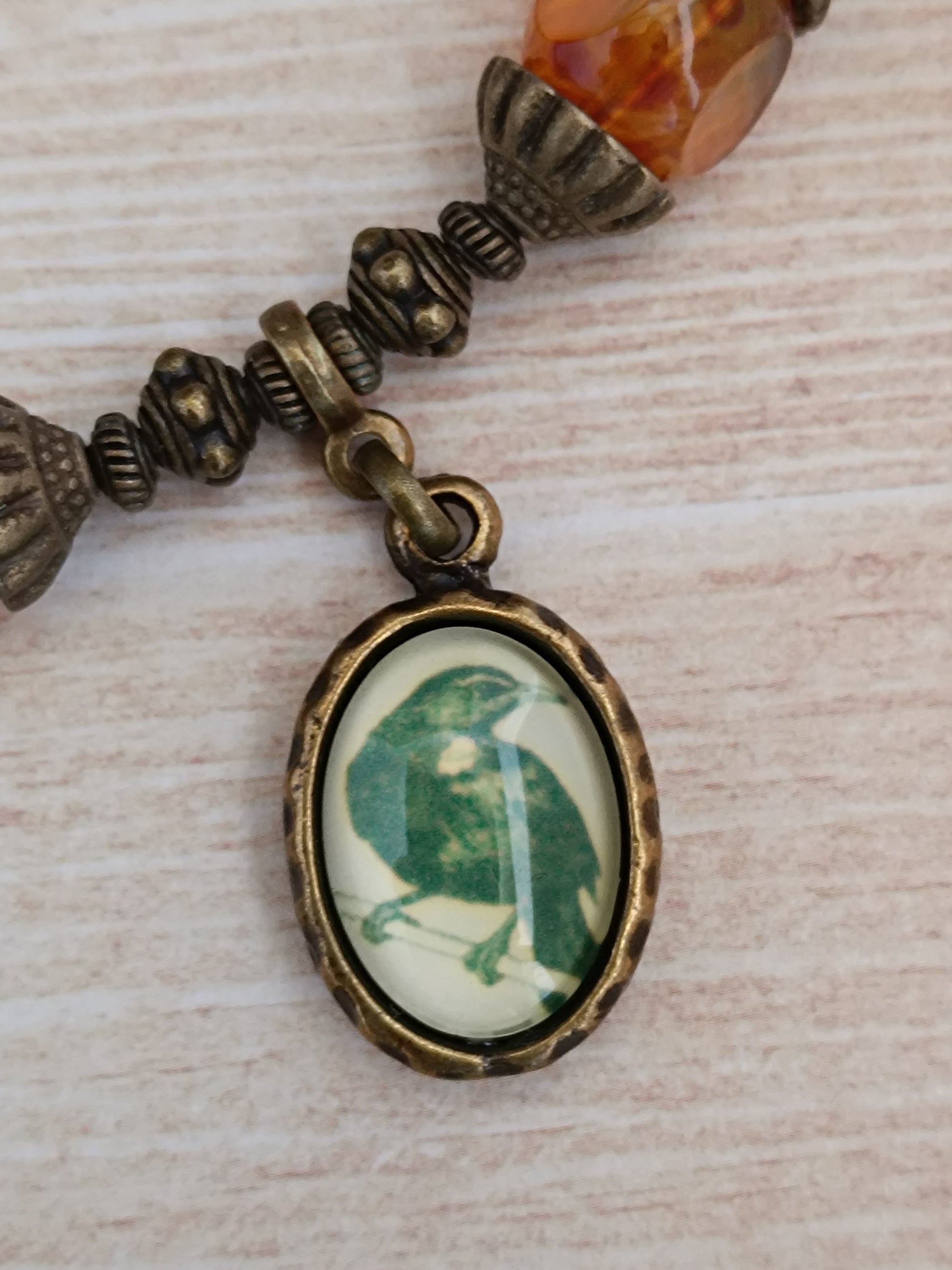 - Pendentif corbeau cabochon - En métal bronze (2x1,5 cm), messager entre les mondes