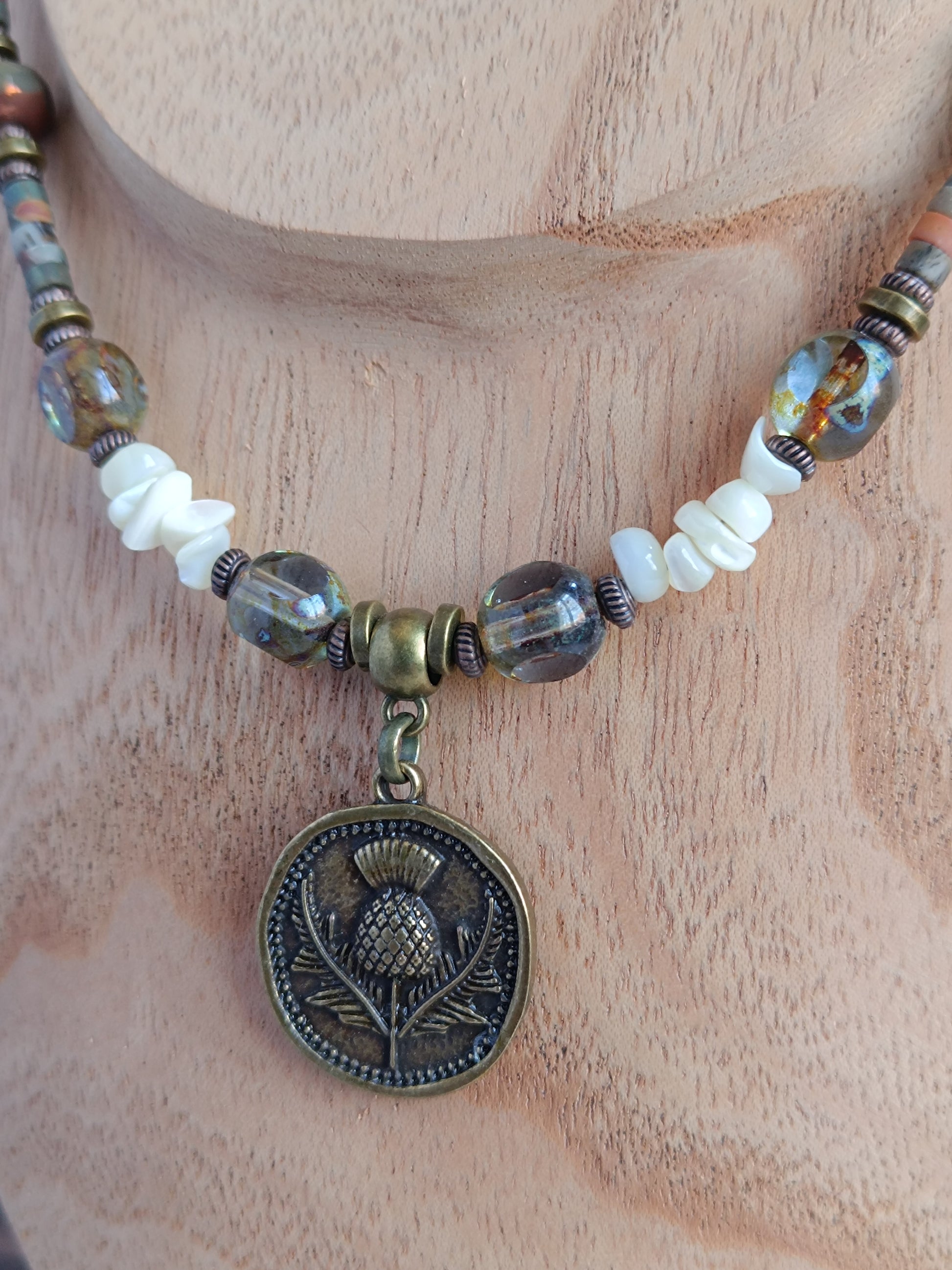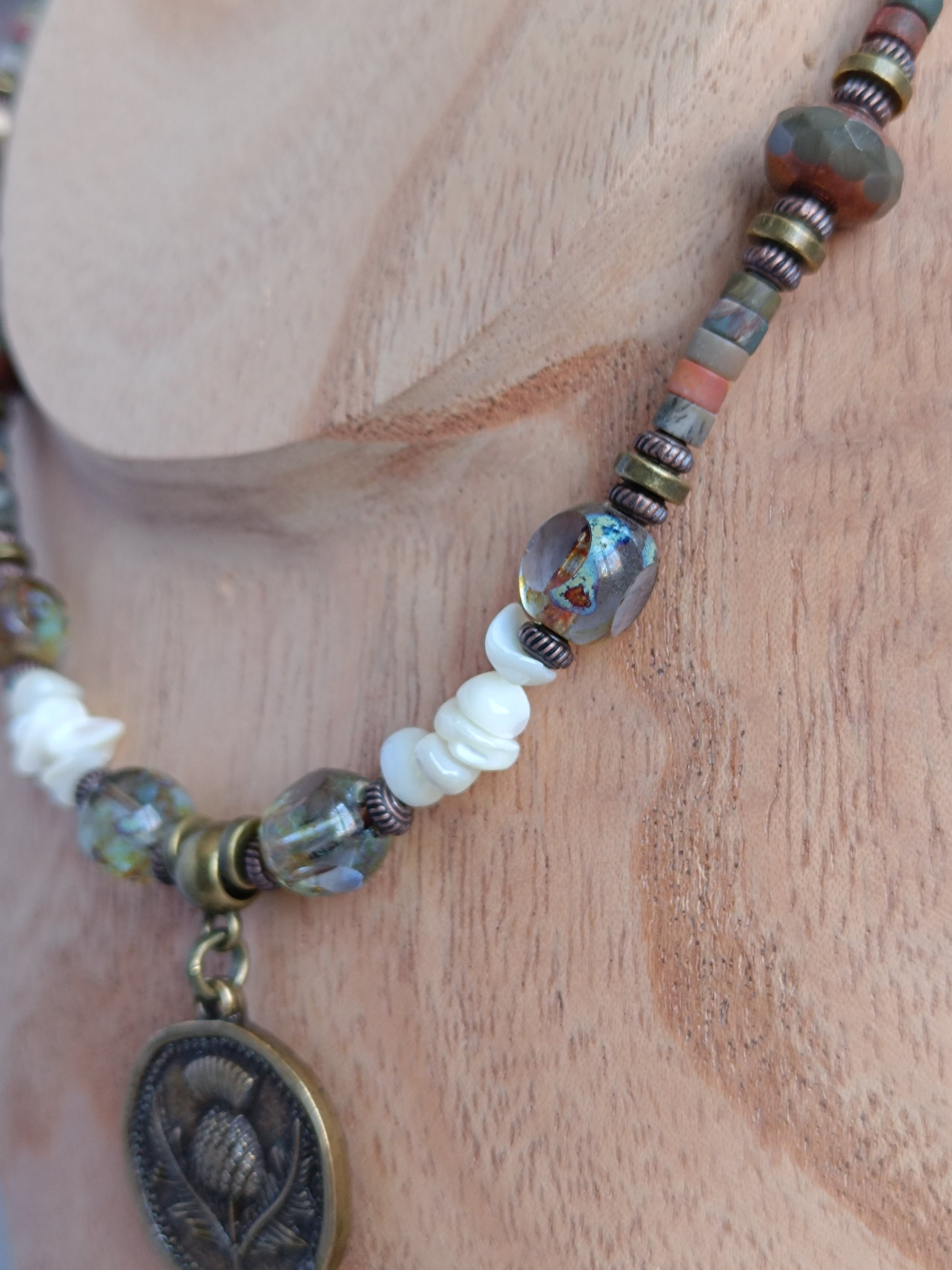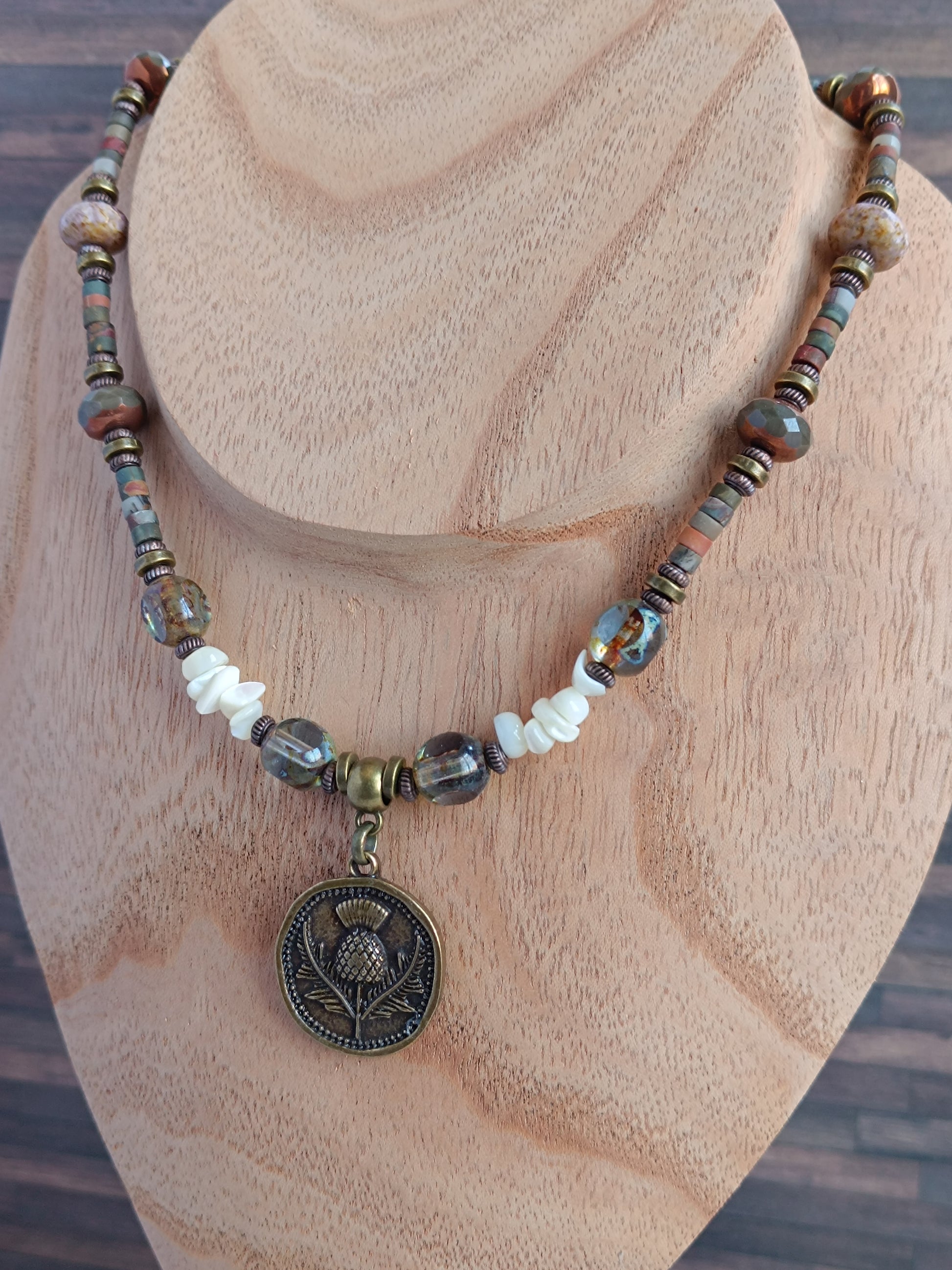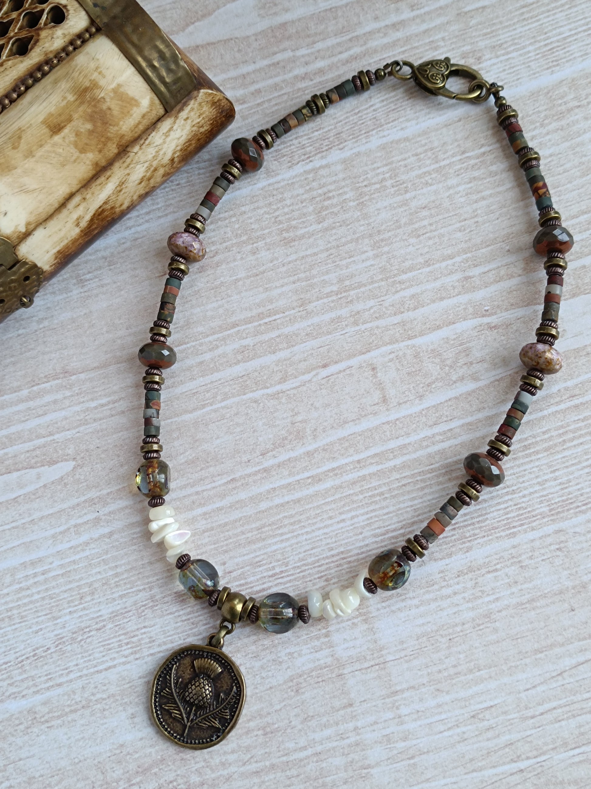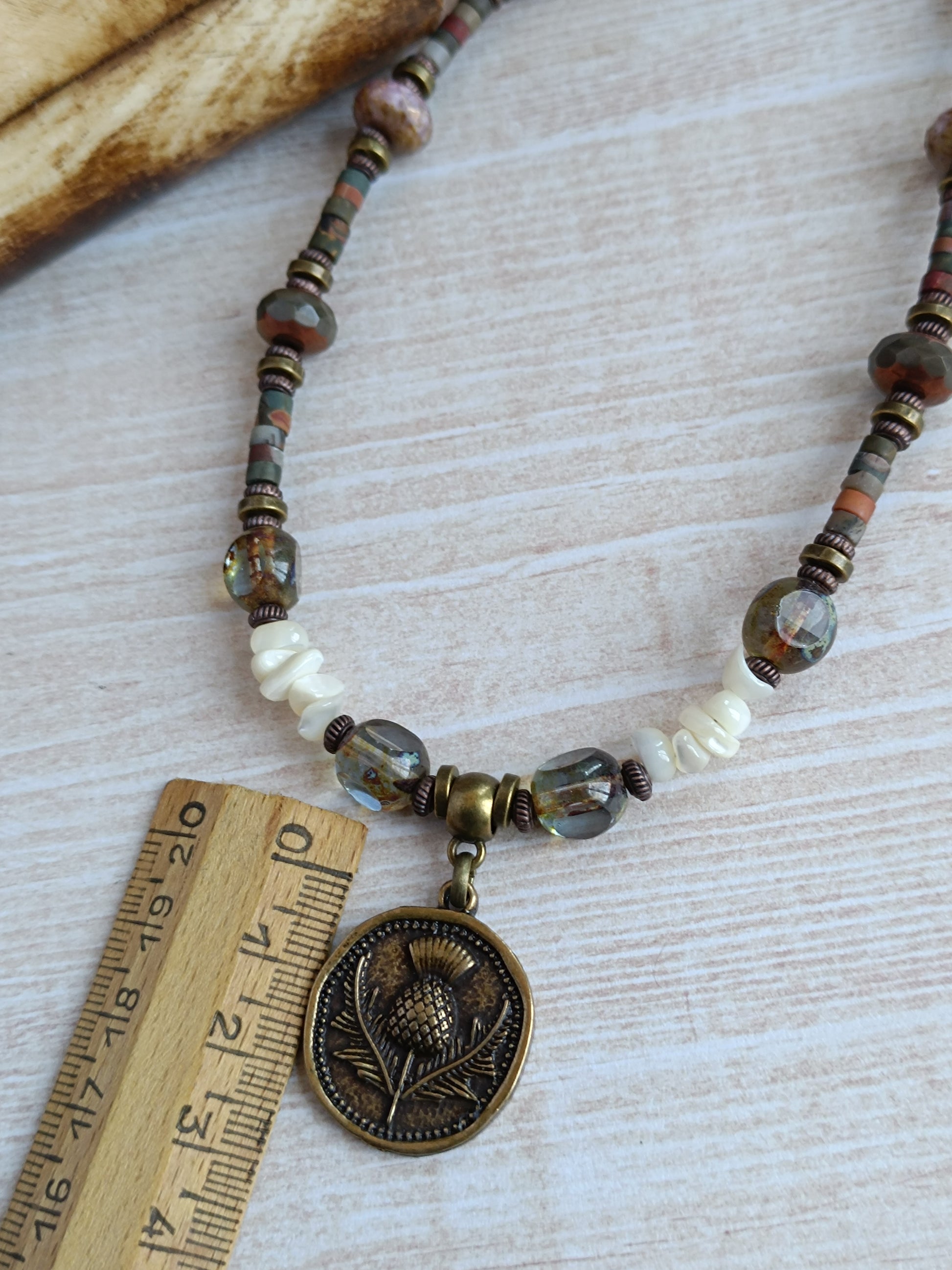 Collier Bohème Ethnique – Pendentif Chardon Écossais & Perles Artisanales