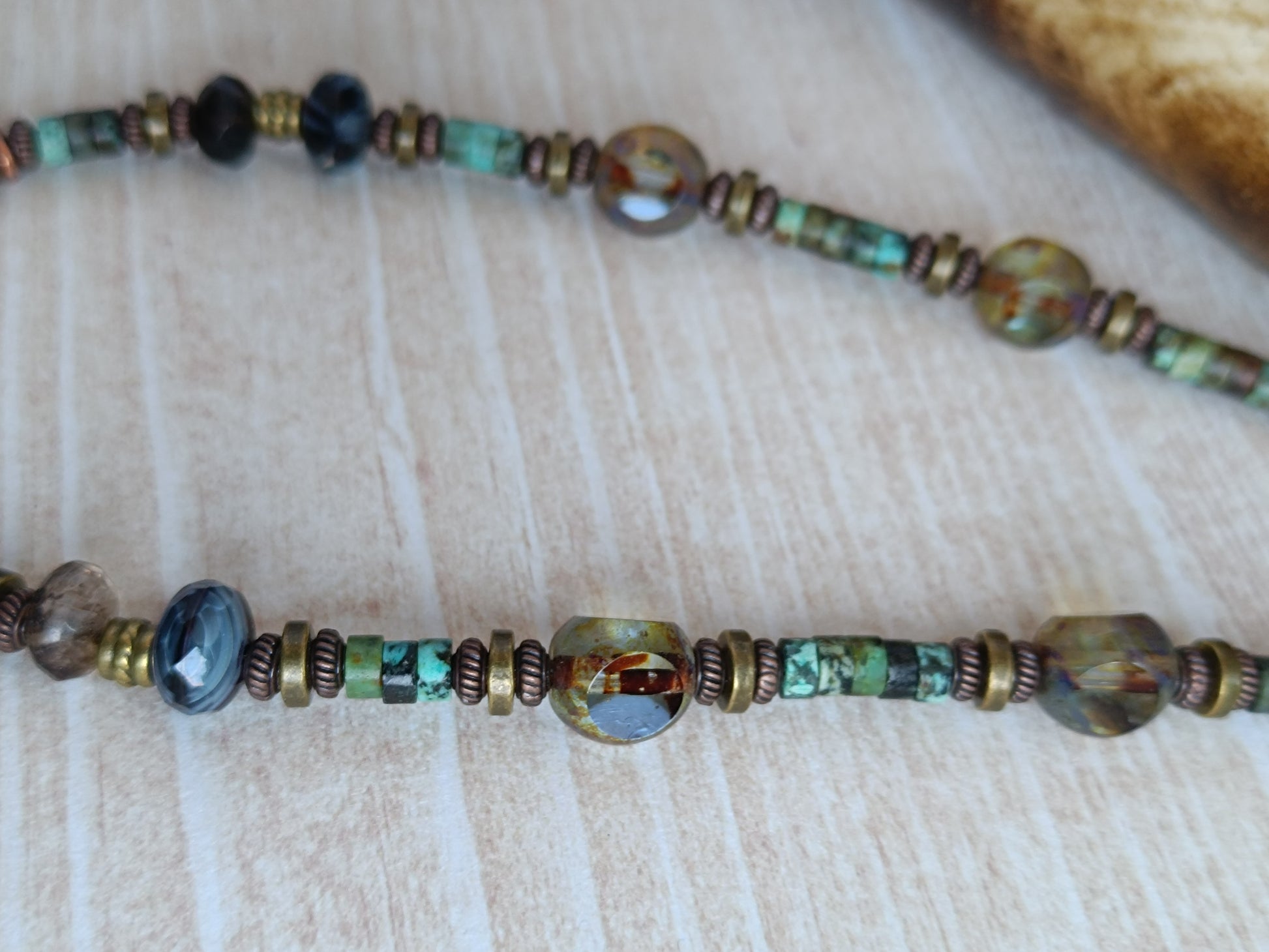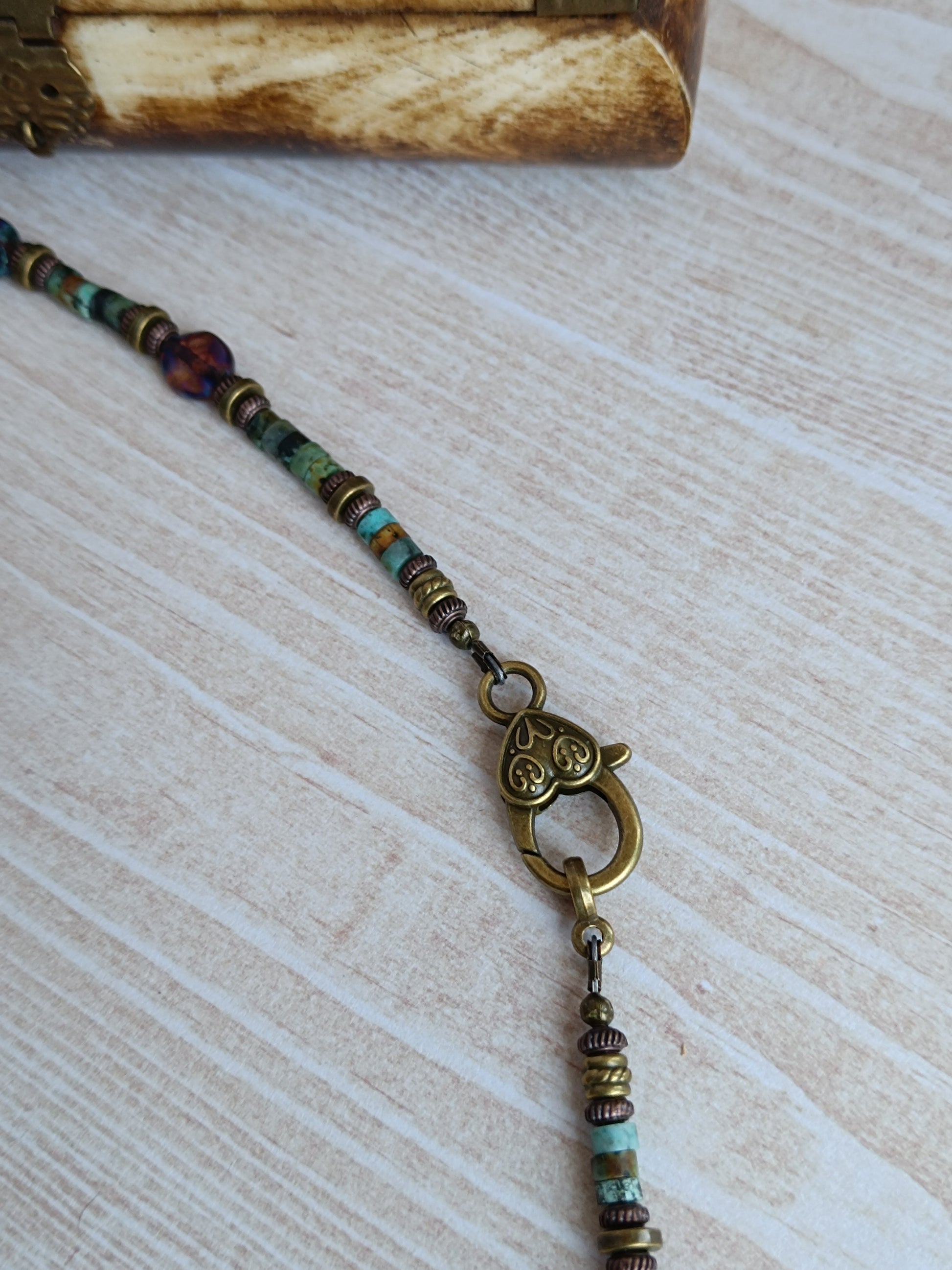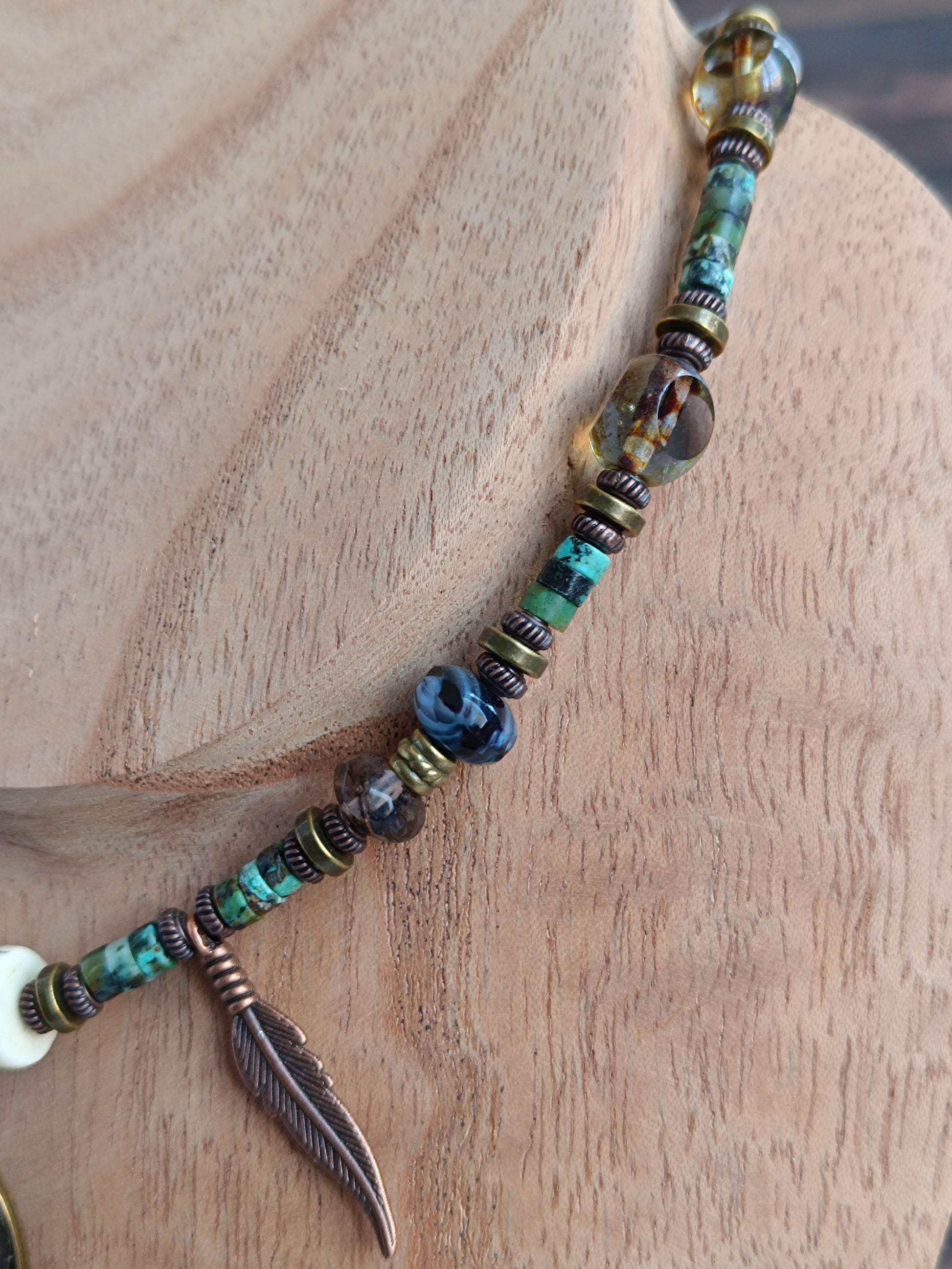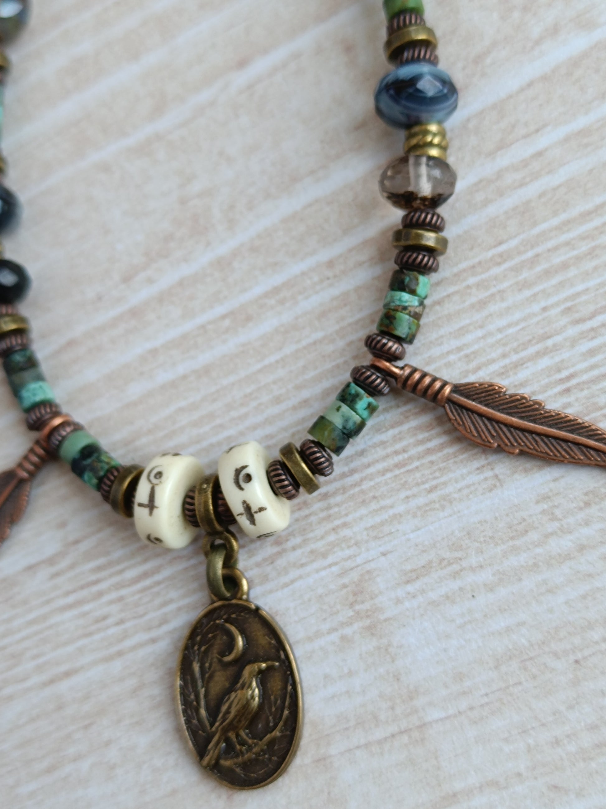 Collier Bohème Ethnique – Pendentif Corbeau Mystique & Perles en Verre Tchèque