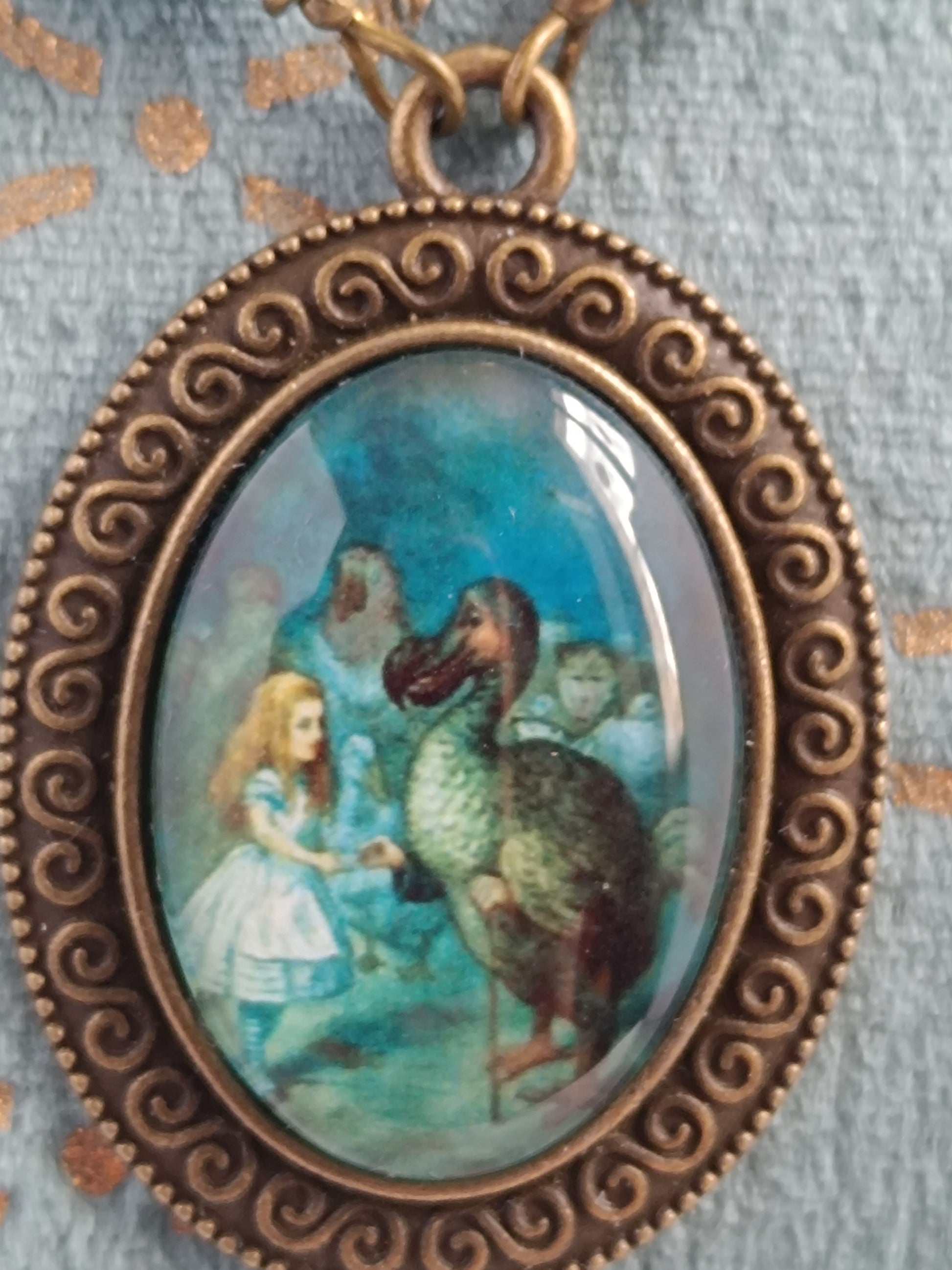 - Cabochon bronze antique avec motif Alice et le Dodo