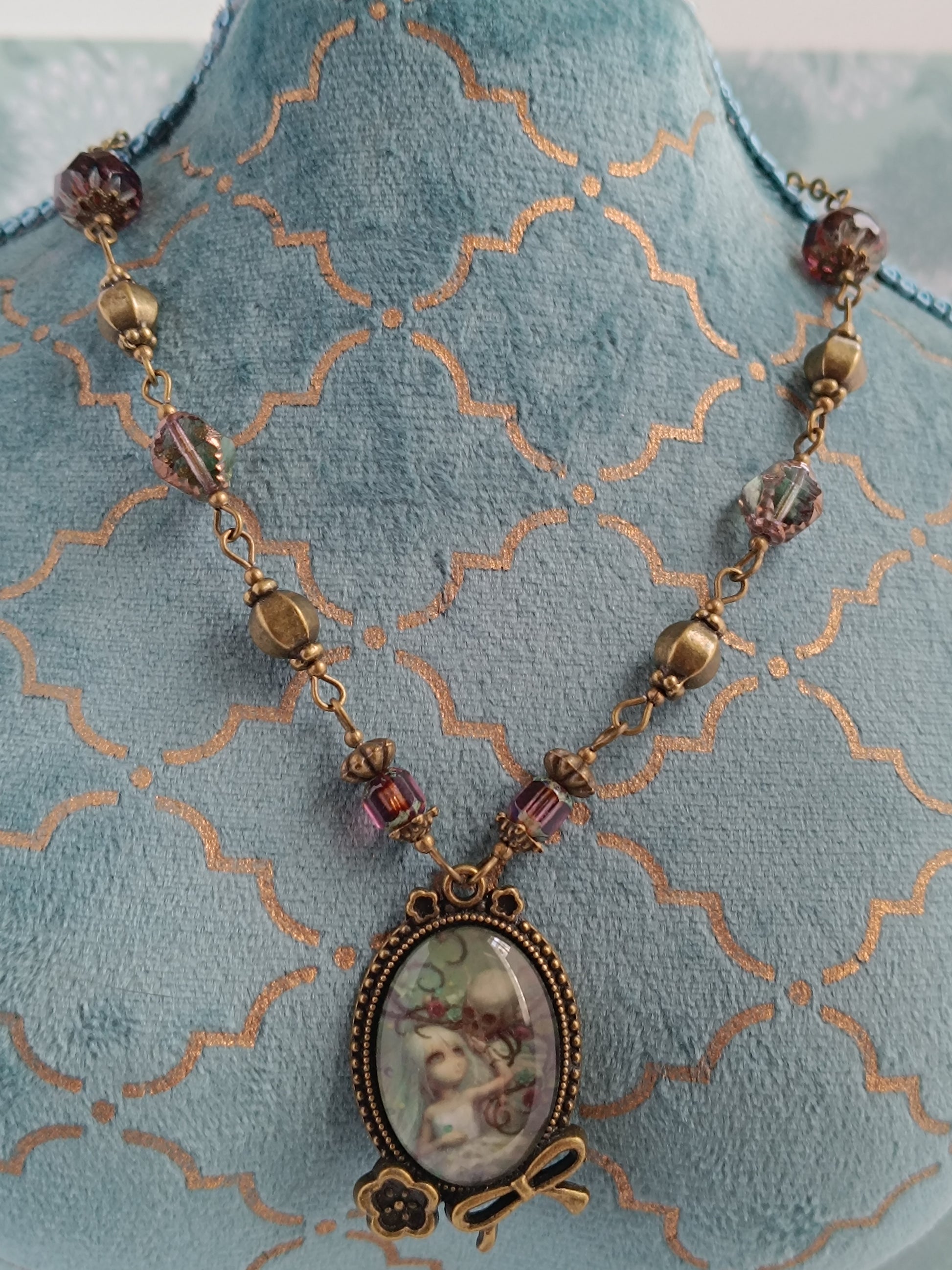 Collier Vanité Pastel - Cabochon Verre Gothique