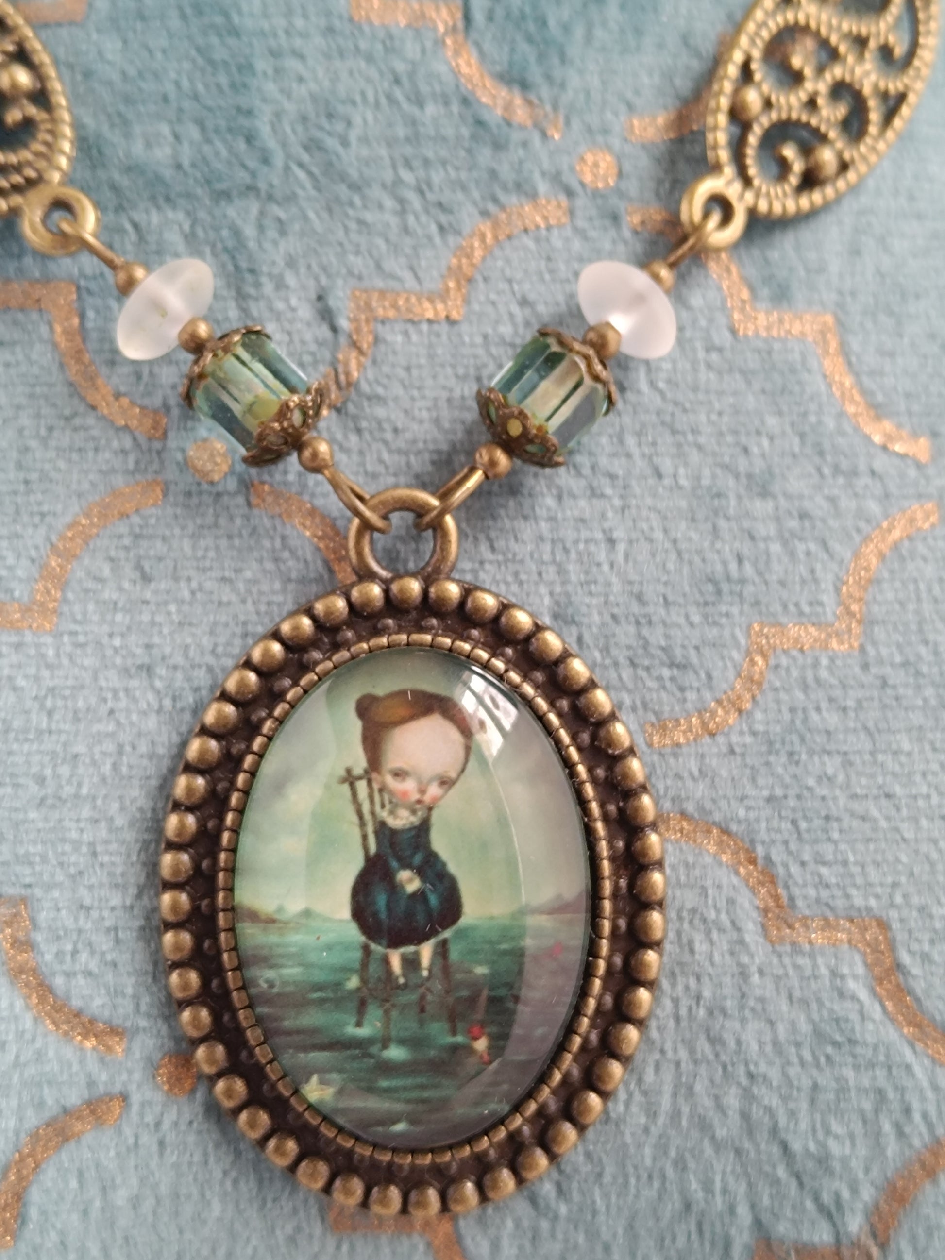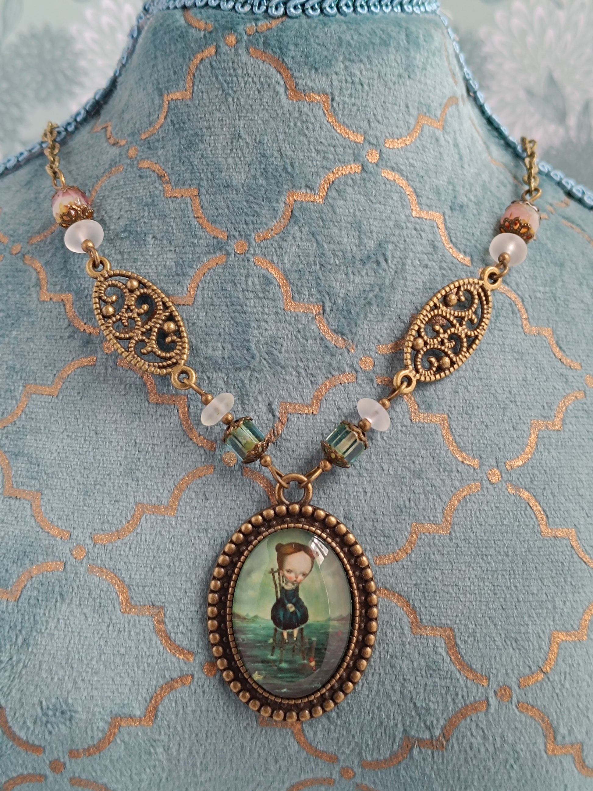 Collier Fille à la Mer - Cabochon Verre Vintage