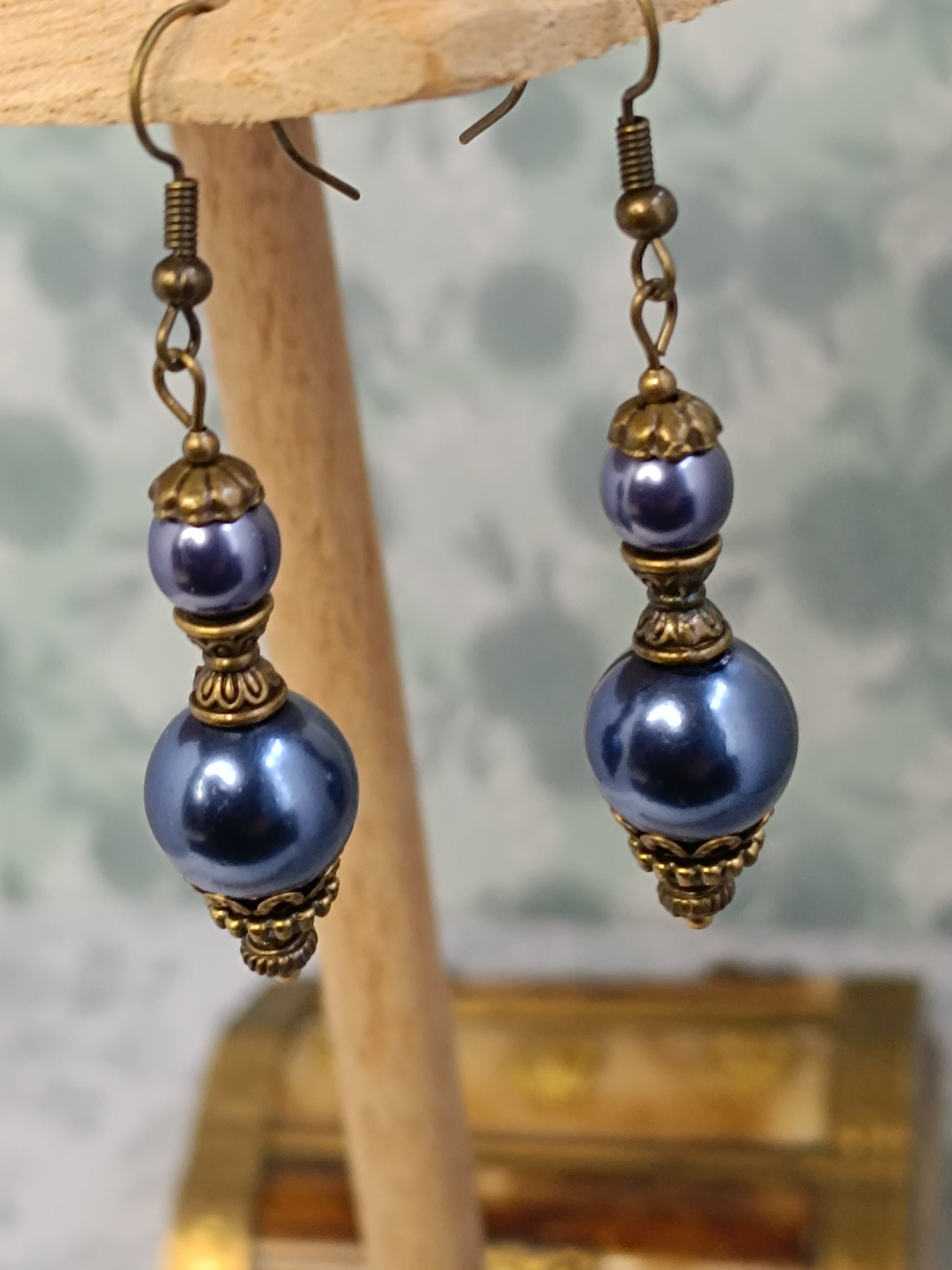 Boucles d'Oreilles Perles Rondes Précieuses - Verre Tchèque Nacré Bronze