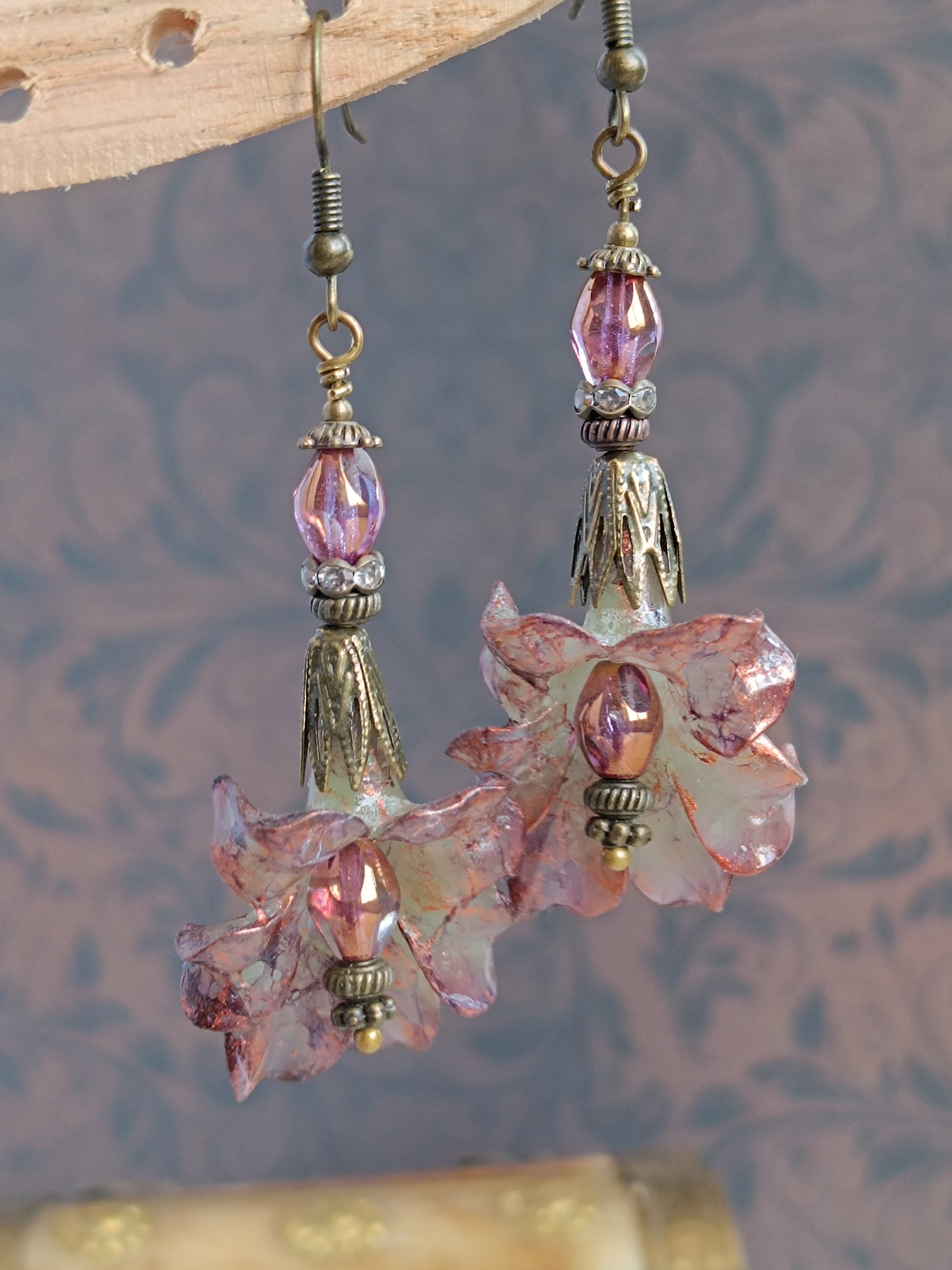 Boucles d'oreilles pendantes - Fleurs tropicales feeriques