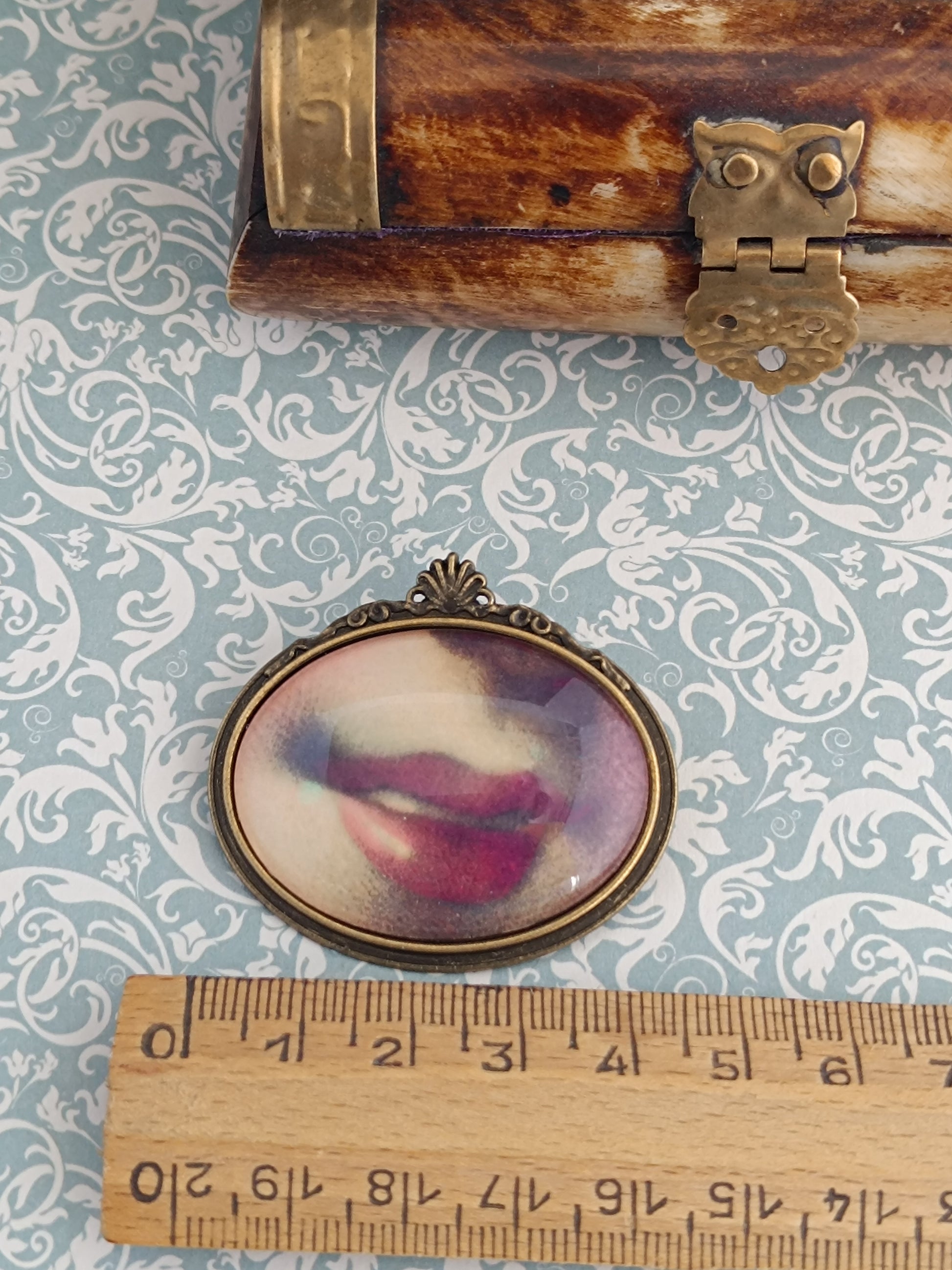Broche artistique avec cabochon verre bouche de 30x40 mm :