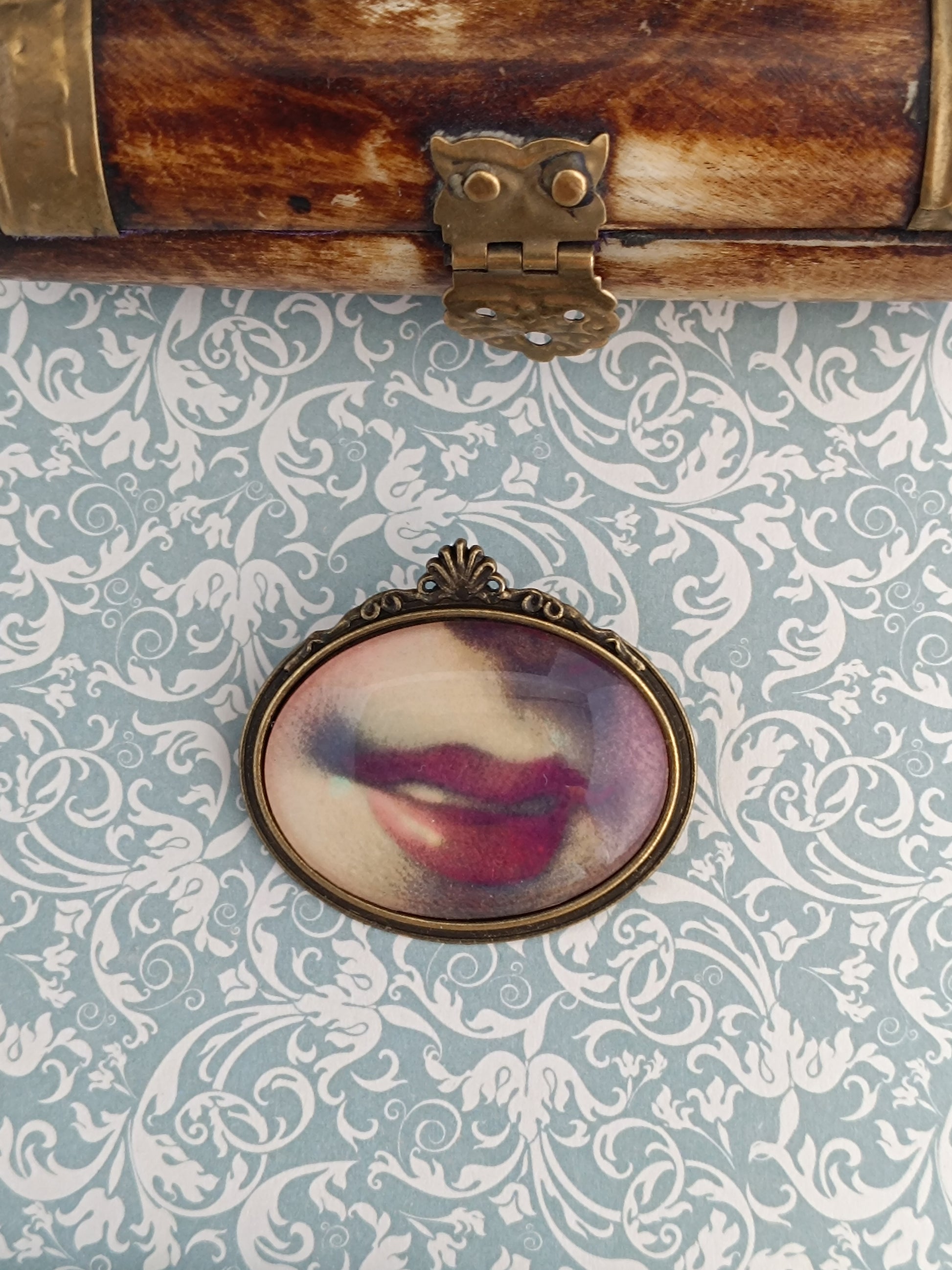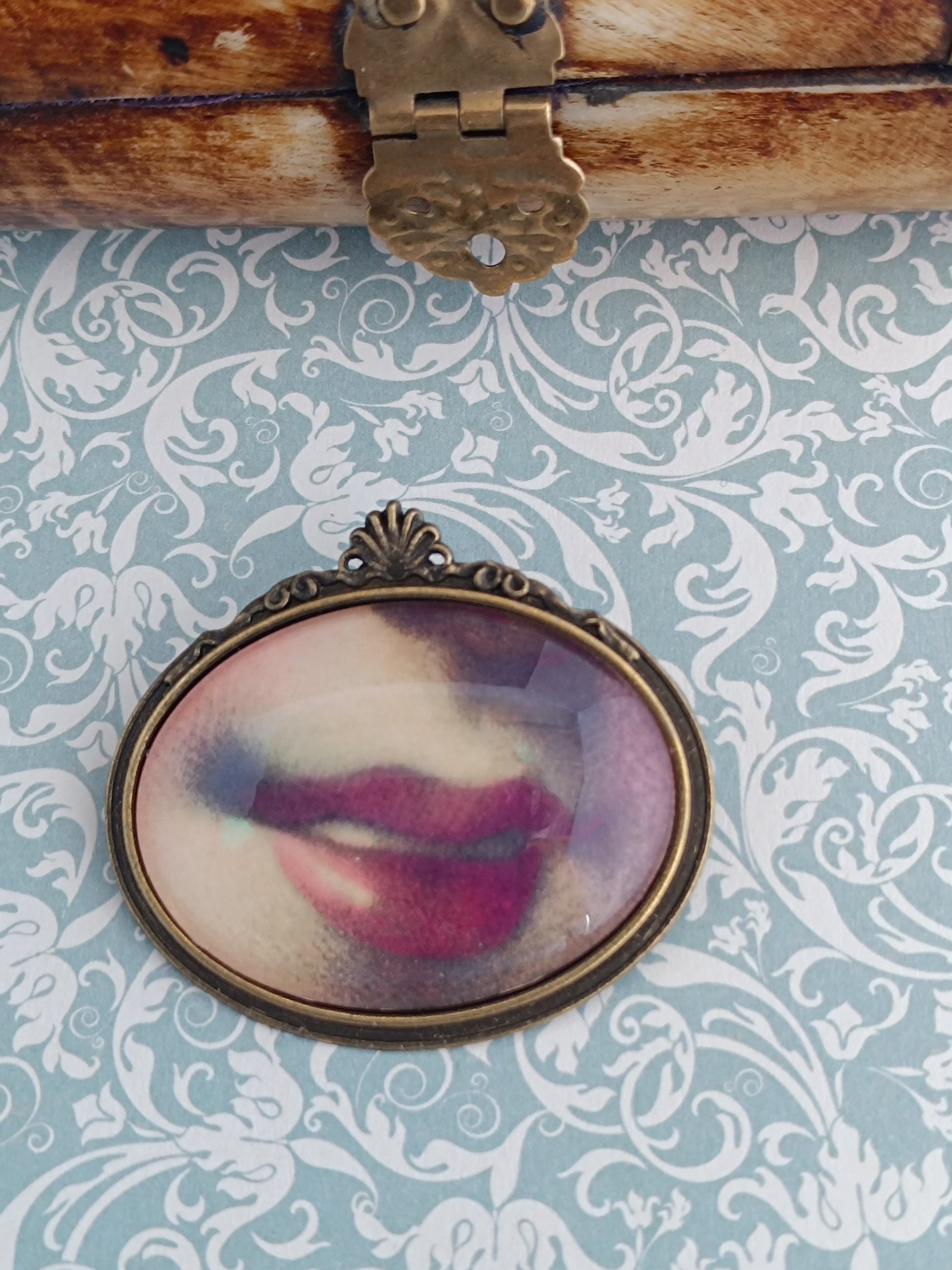 Broche cabochon verre bouche, original style cabinet de curiosités victorien