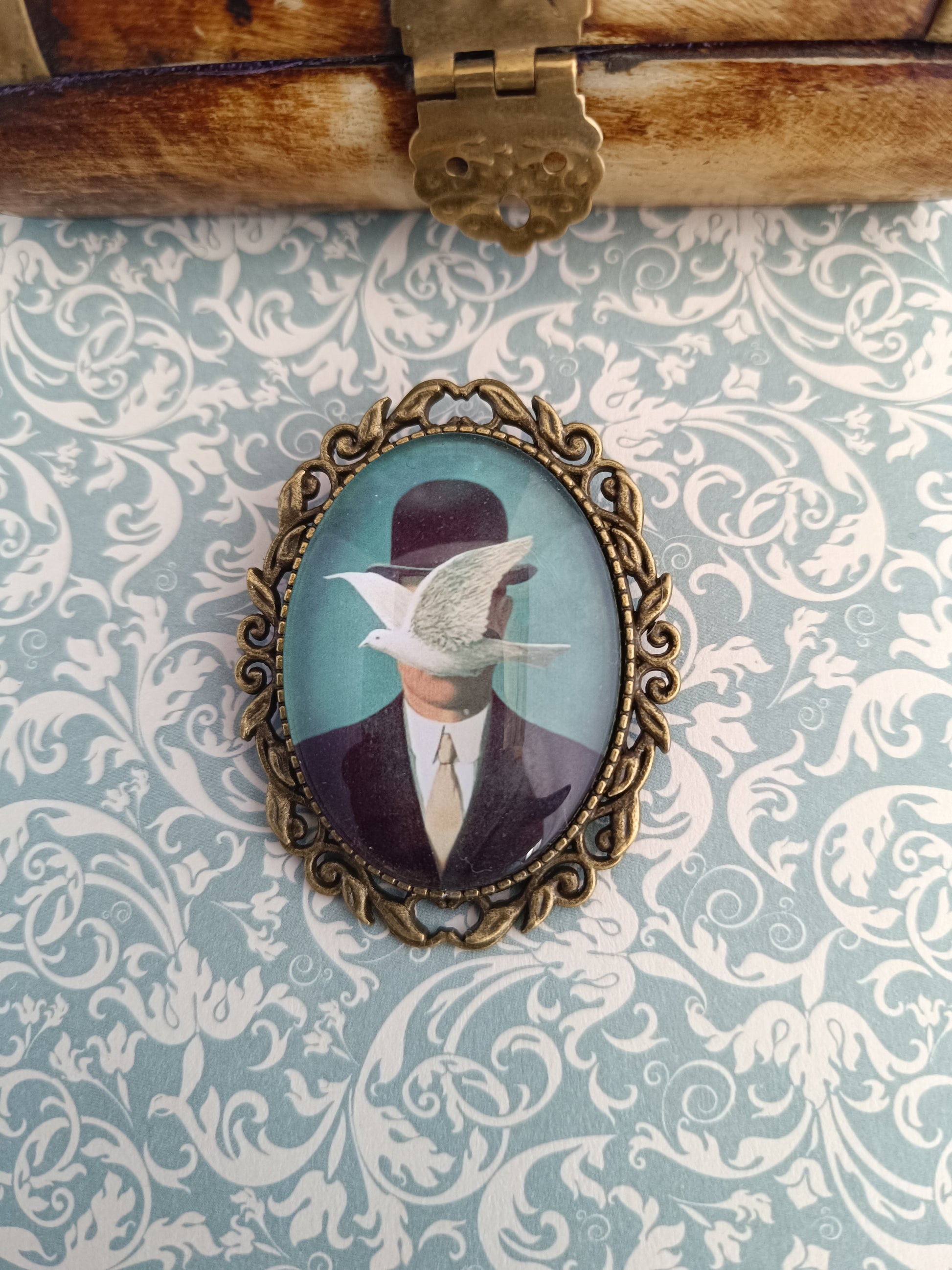 Broche cabochon verre – Illustration René Magritte