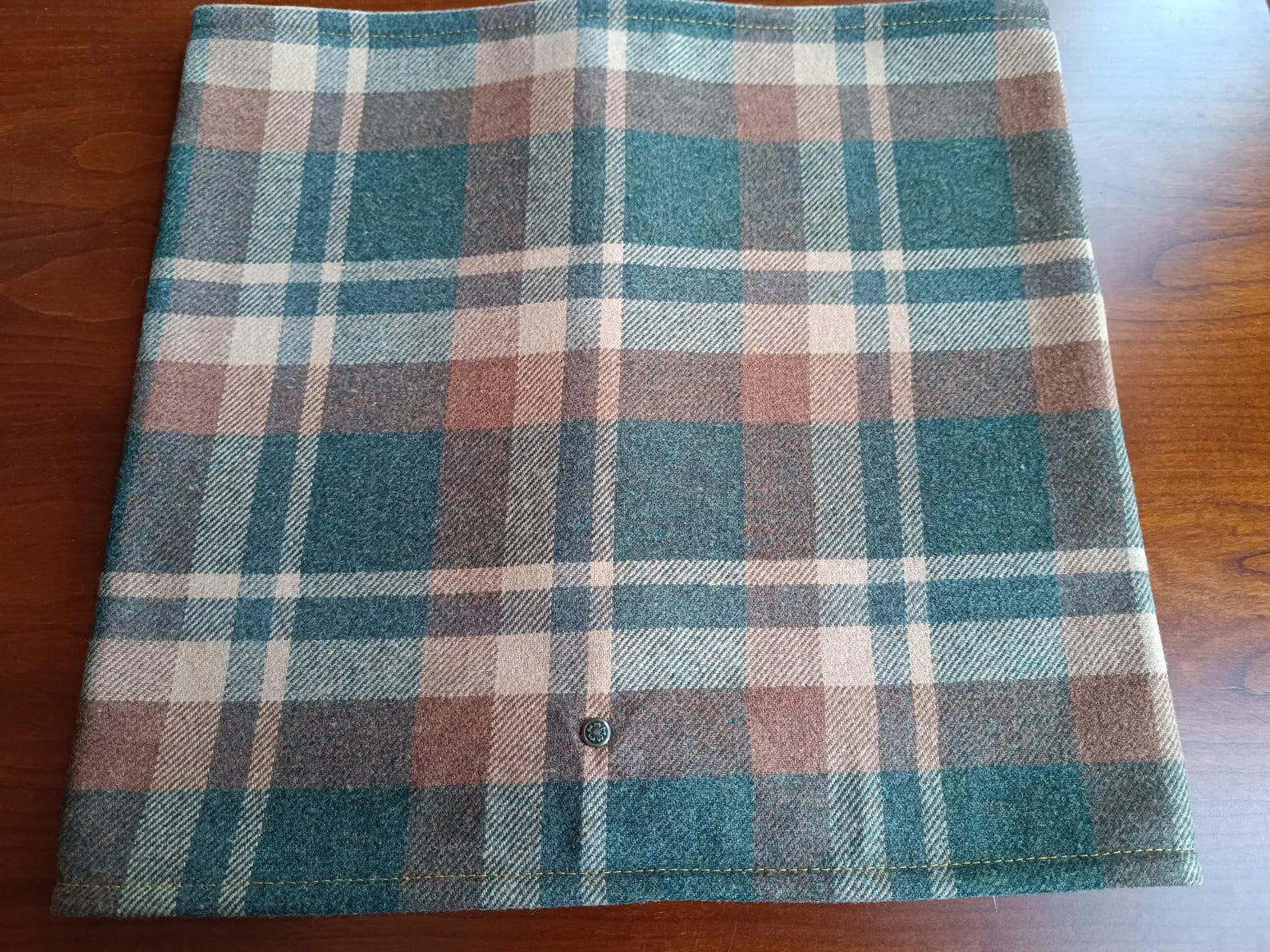 Je recommande un lavage à la main, sans torsion, afin de préserver la qualité du tissu. Je laisse sécher le snood à plat, à l’abri de la lumière directe du soleil pour éviter toute altération des couleurs. Pour le repassage, j’utilise une pattemouille et une température douce, ce qui permet de respecter la finesse de la matière et de conserver son aspect d’origine.