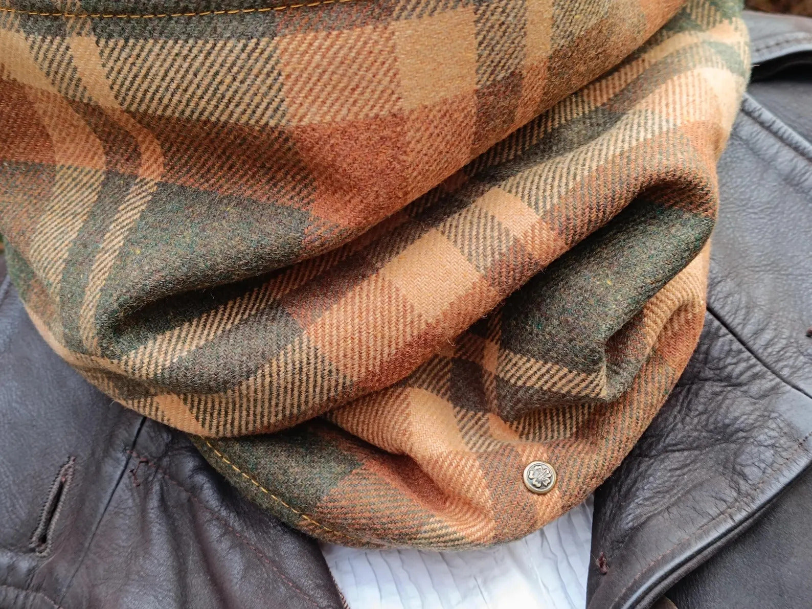 Un petit rivet porte-bonheur, ajouté avec soin, vient compléter ce snood avec une note personnelle et symbolique.