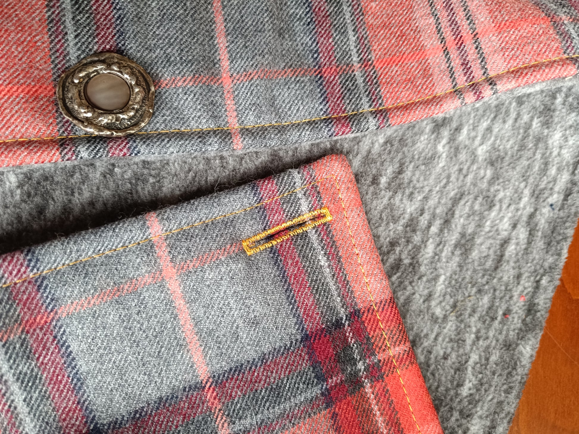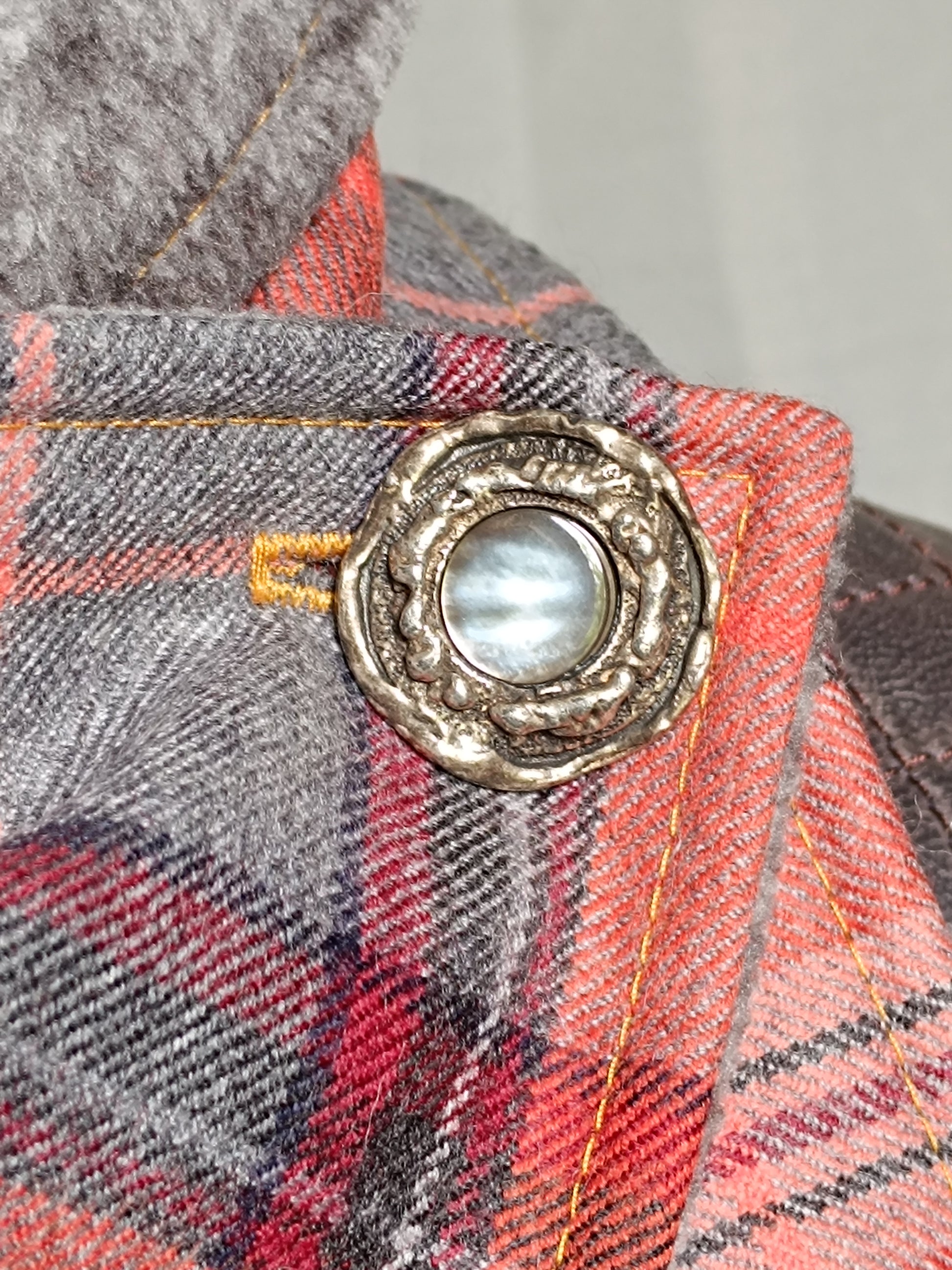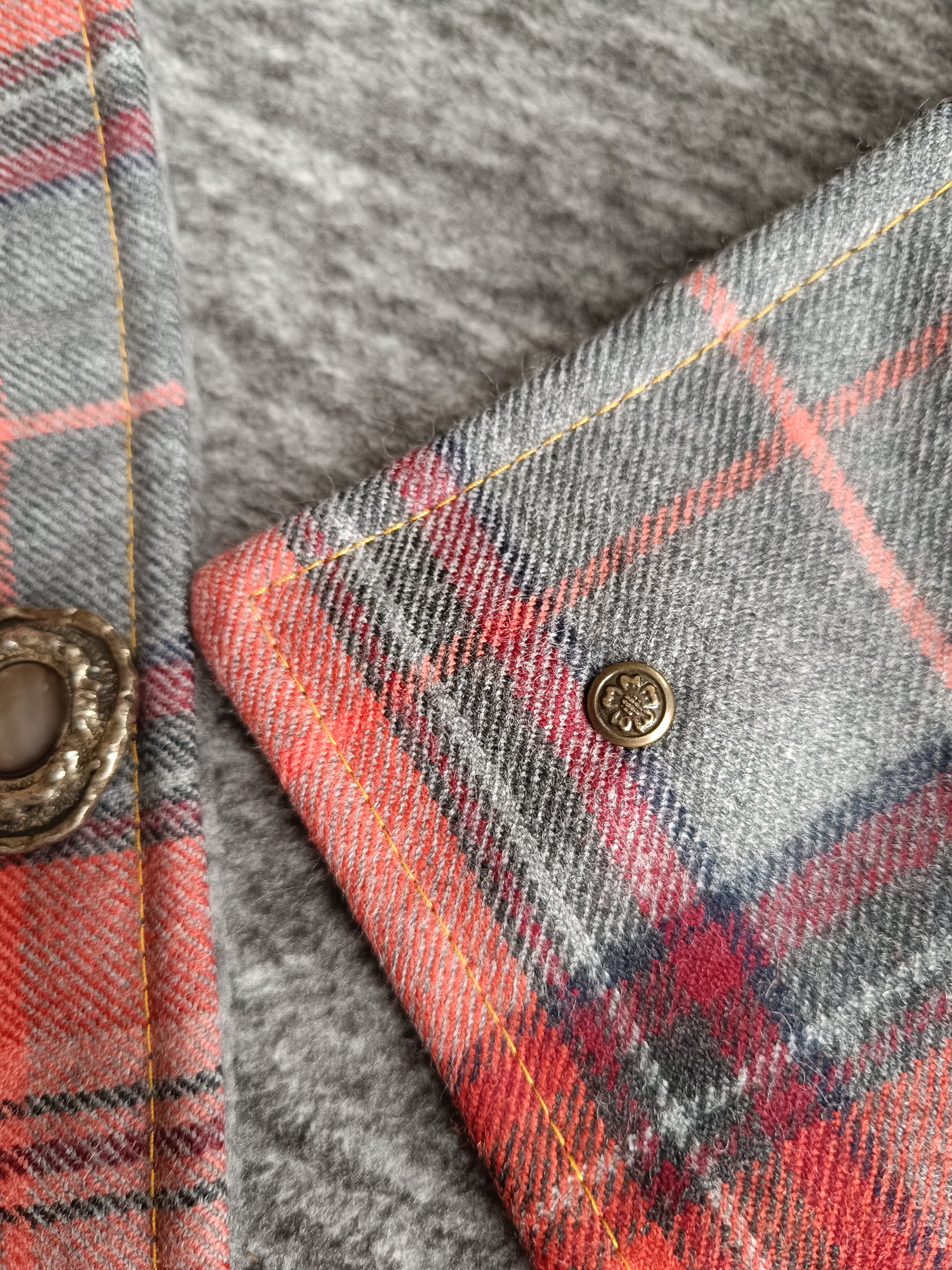 Tour de cou tartan laine doublé polaire - Bouton métal nacre et détail bronze