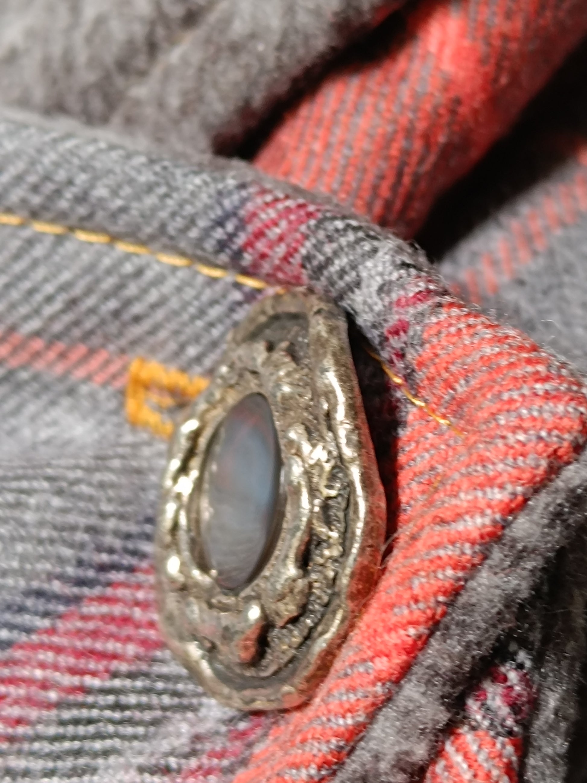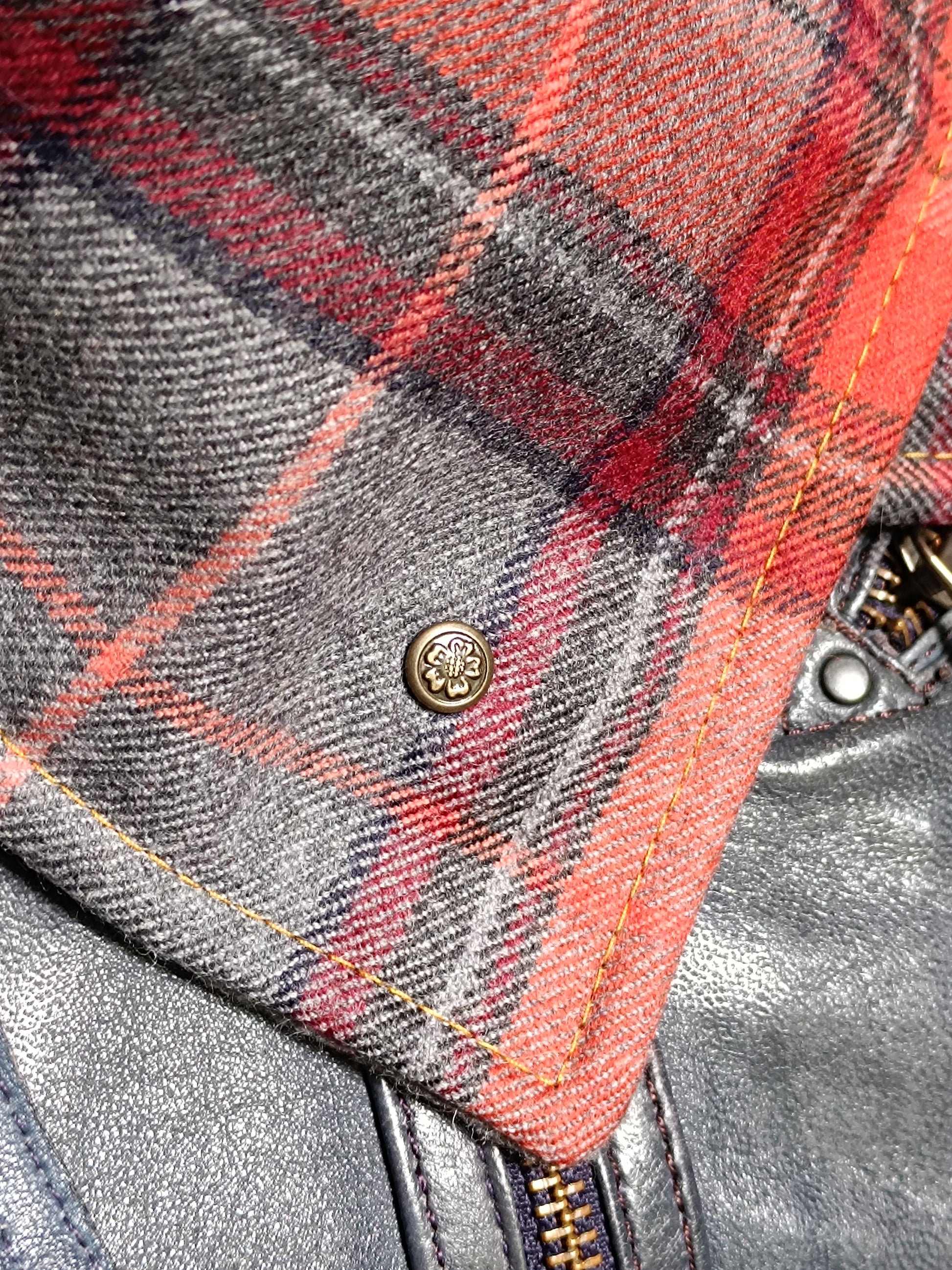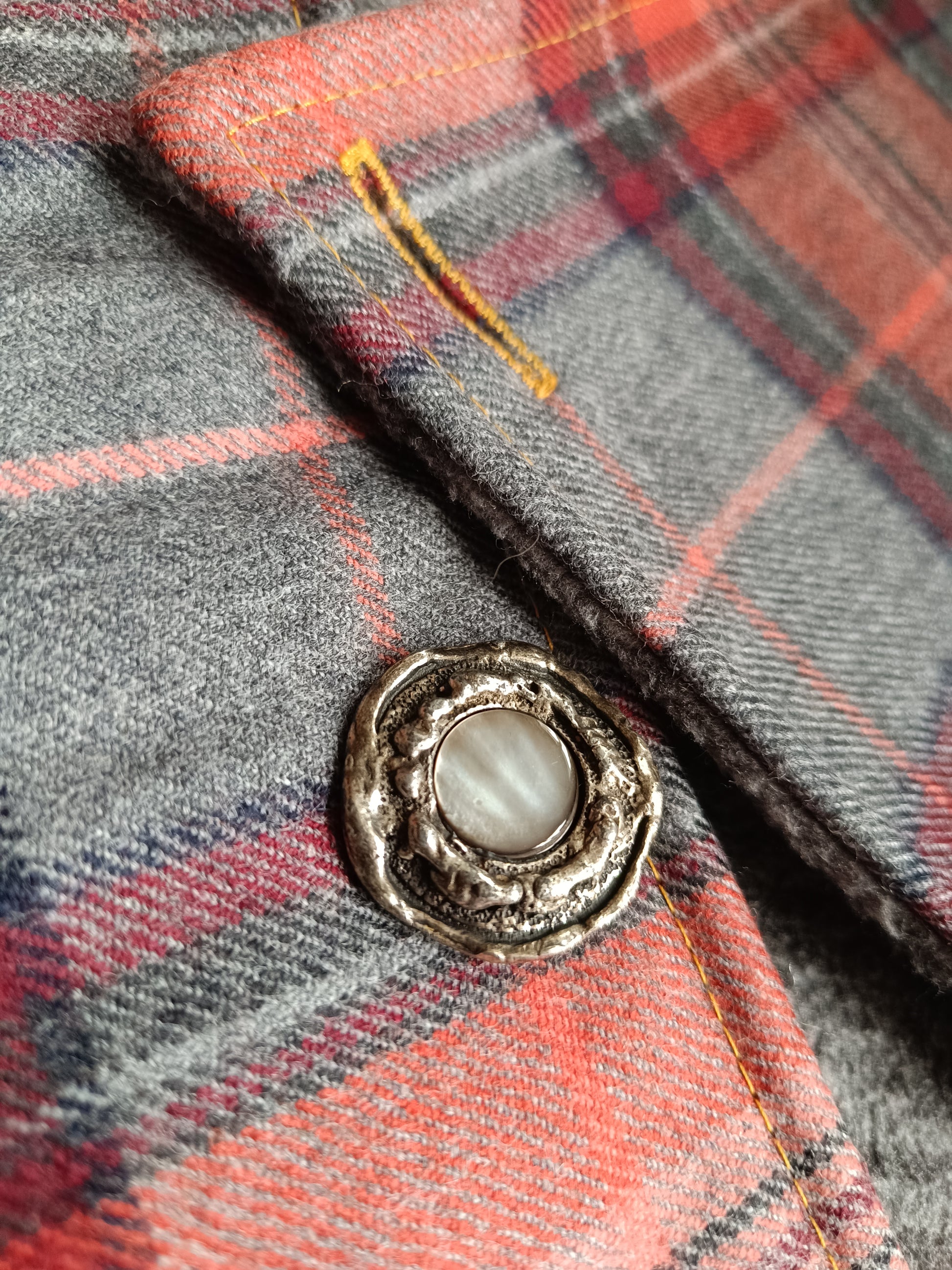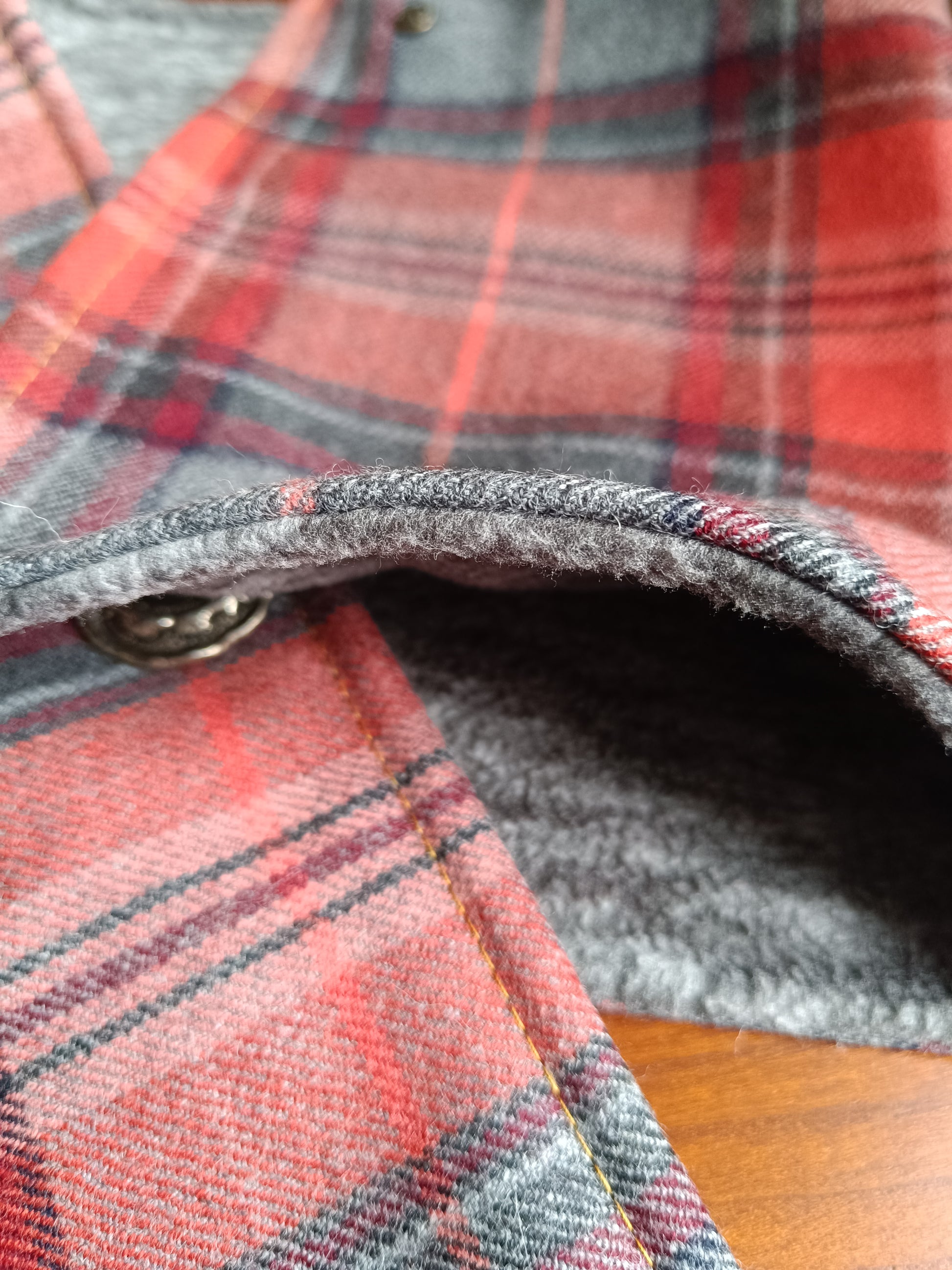 Tour de cou tartan laine doublé polaire - Bouton métal nacre et détail bronze