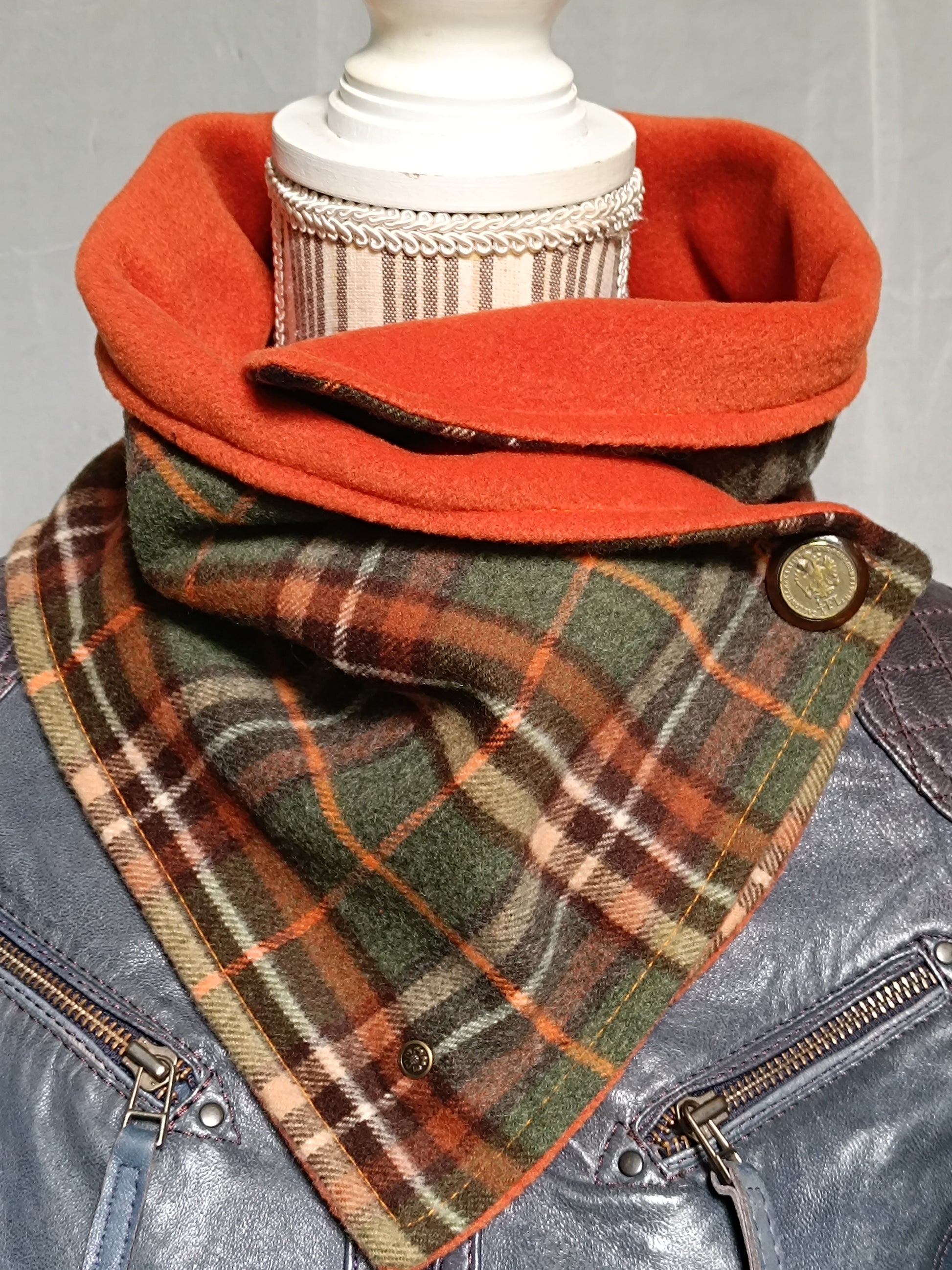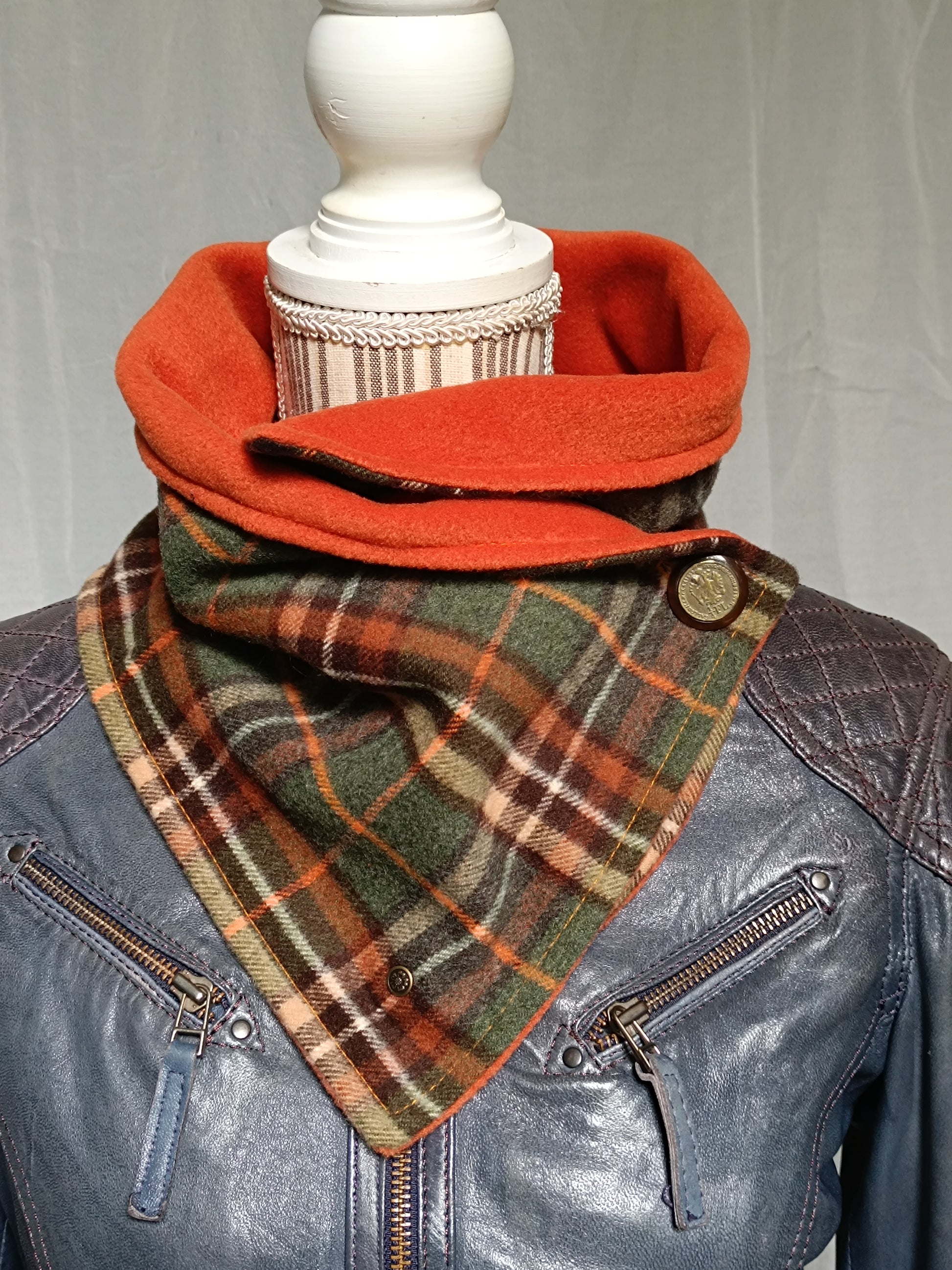 Découvrez ce somptueux tour de cou en lainage tartan écossais vintage aux motifs traditionnels intemporels, sublimé par une doublure en polaire de laine qui caresse délicatement votre peau.