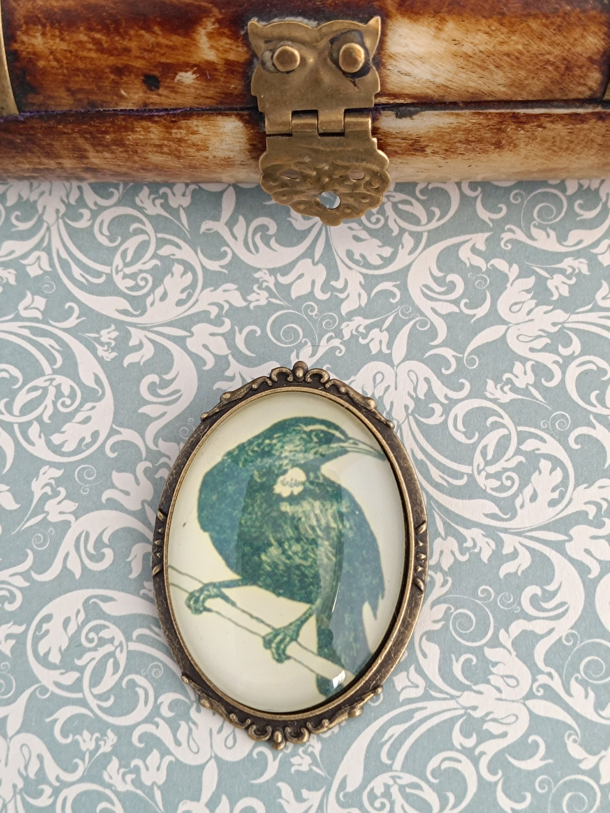 Broche Corbeau Mystique - Cabochon Bronze Gothique